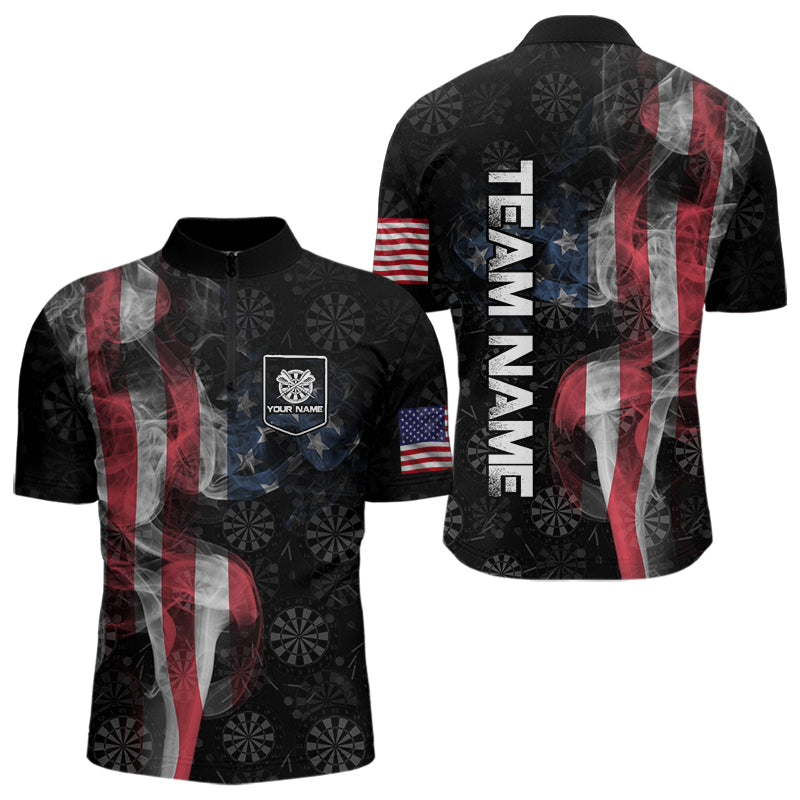 Smoke American Flag Dart Shirt with pocket Custom Patriotic Men Dart Jersey TDM3577