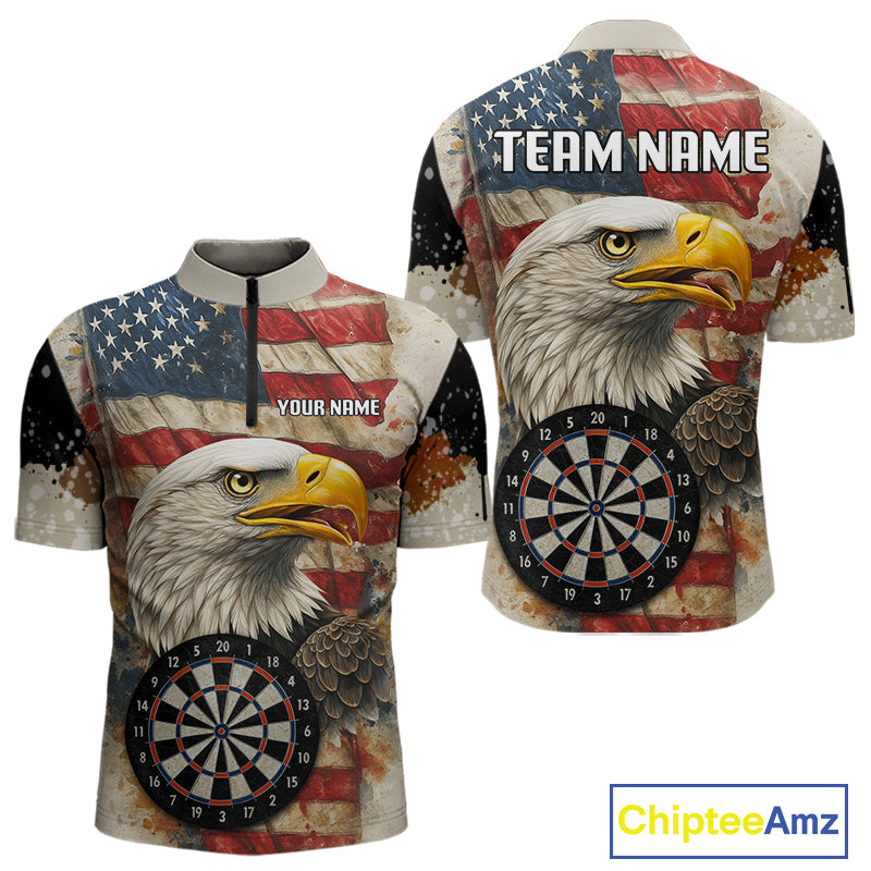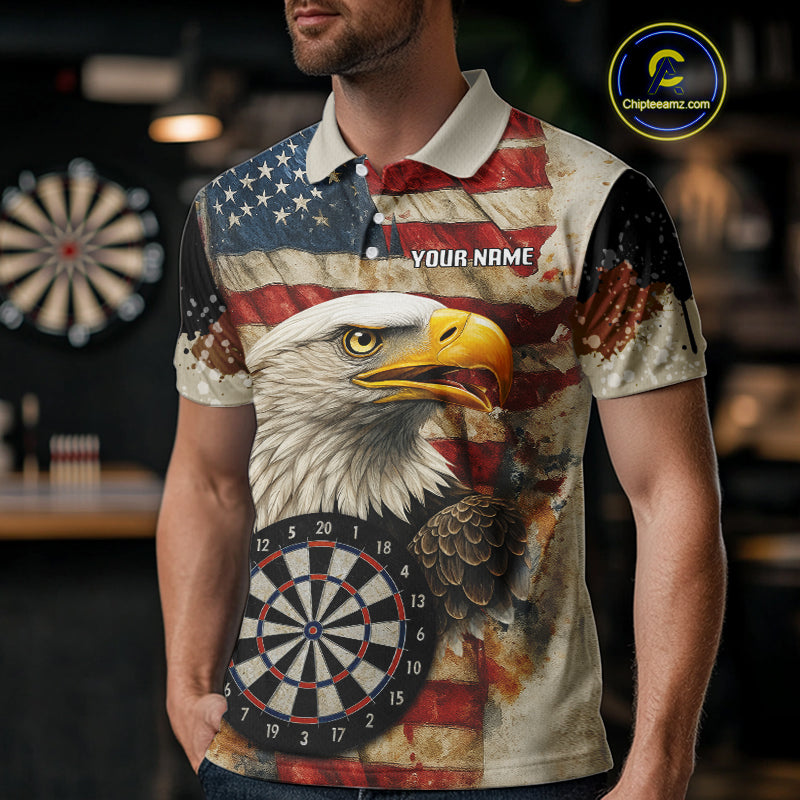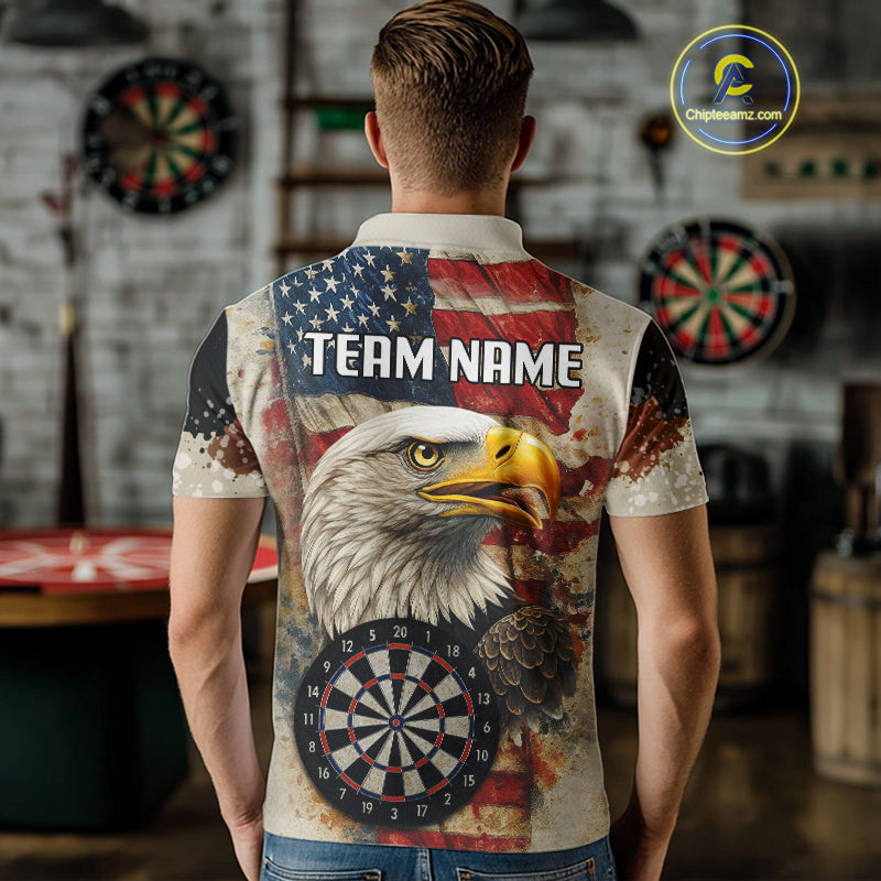 Personalized Patriotic Eagle Darts Shirt For Men Custom Vintage American Flag Darts Team Jersey TDM4219