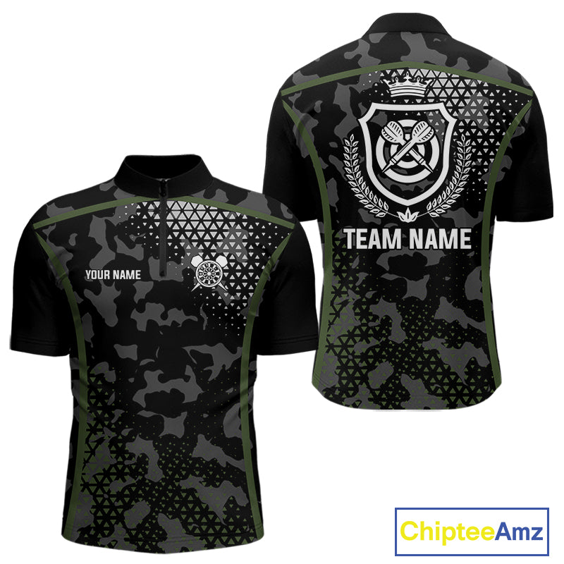 Black & Military Camo Darts Shirt For Men Custom Dart Jersey Pocket Option TDM4652