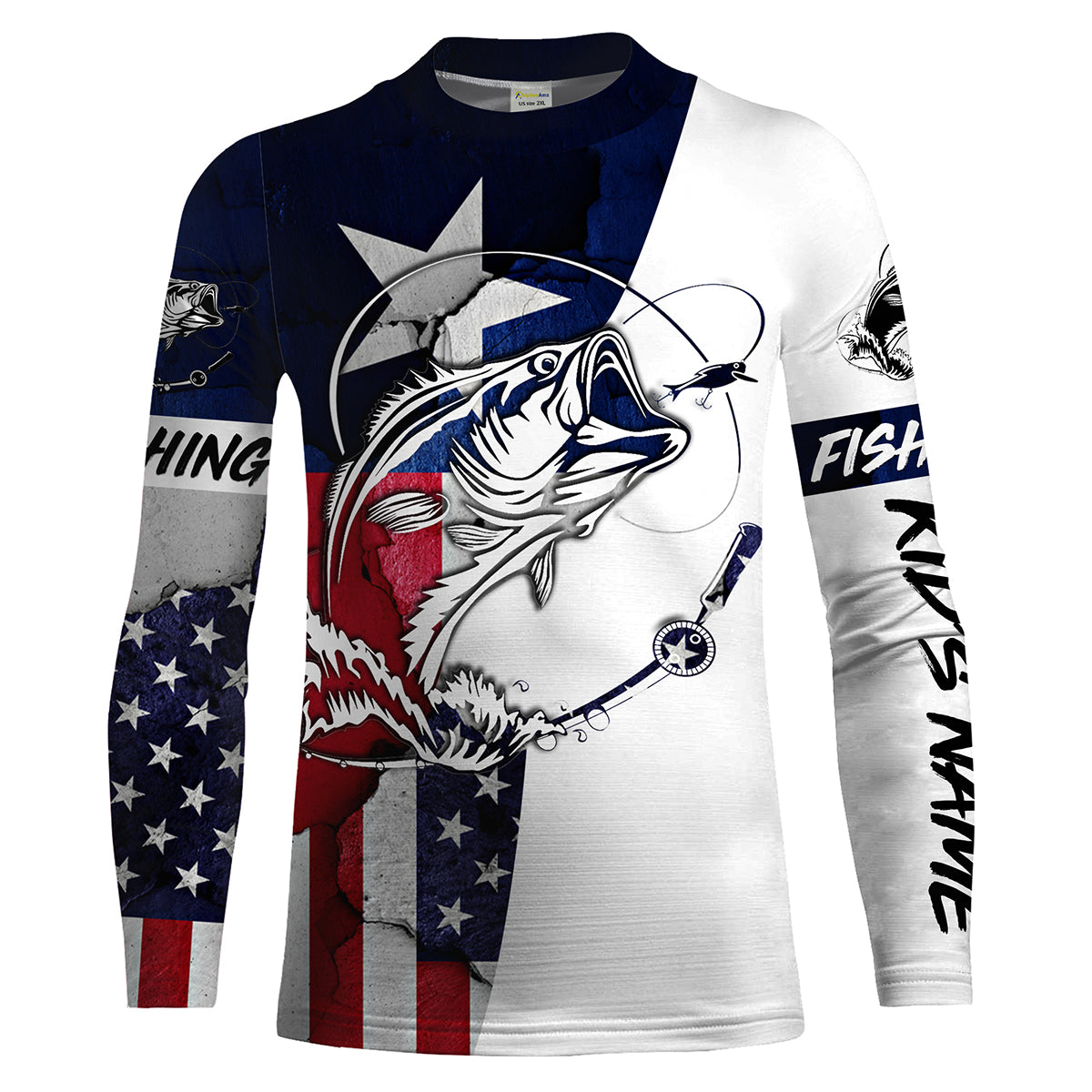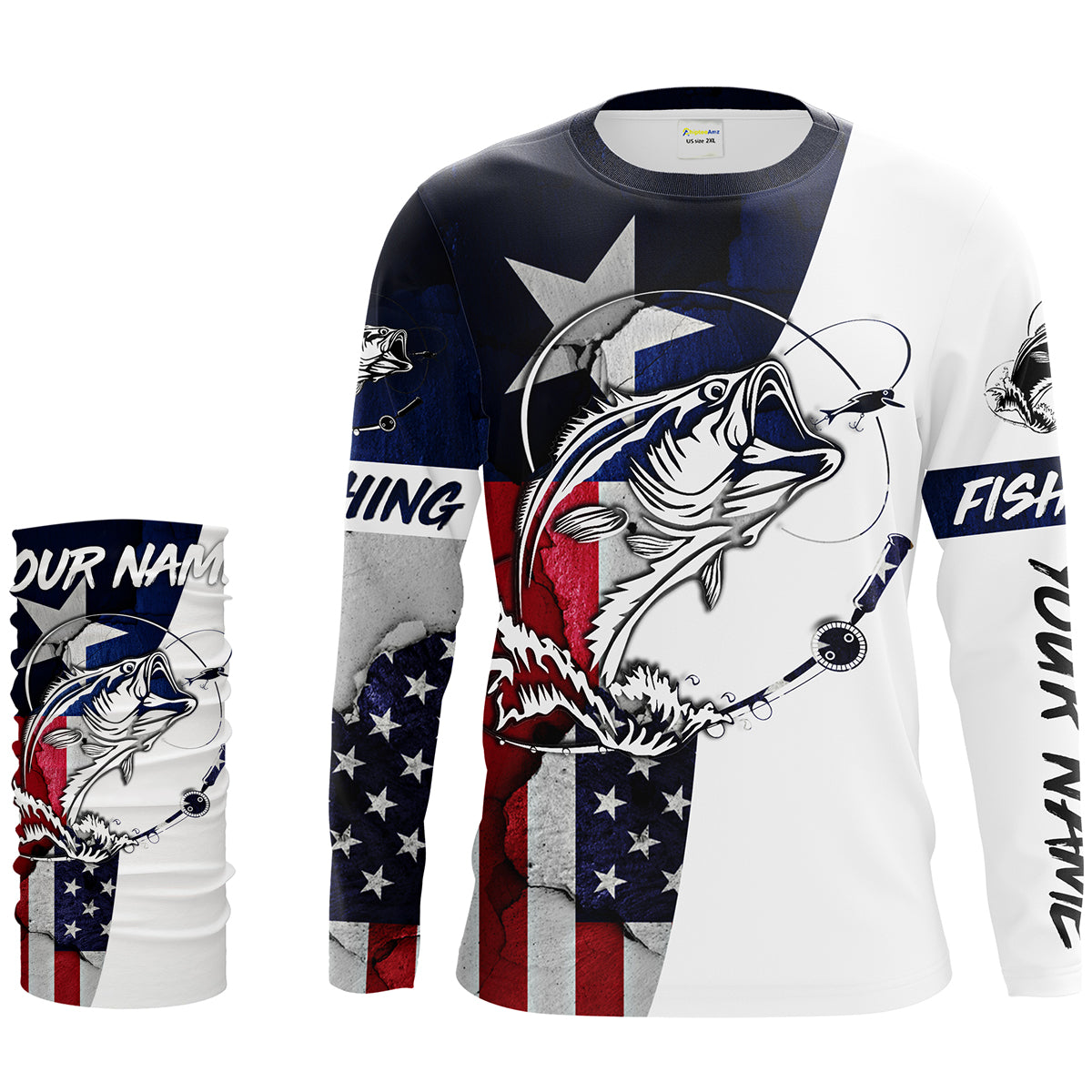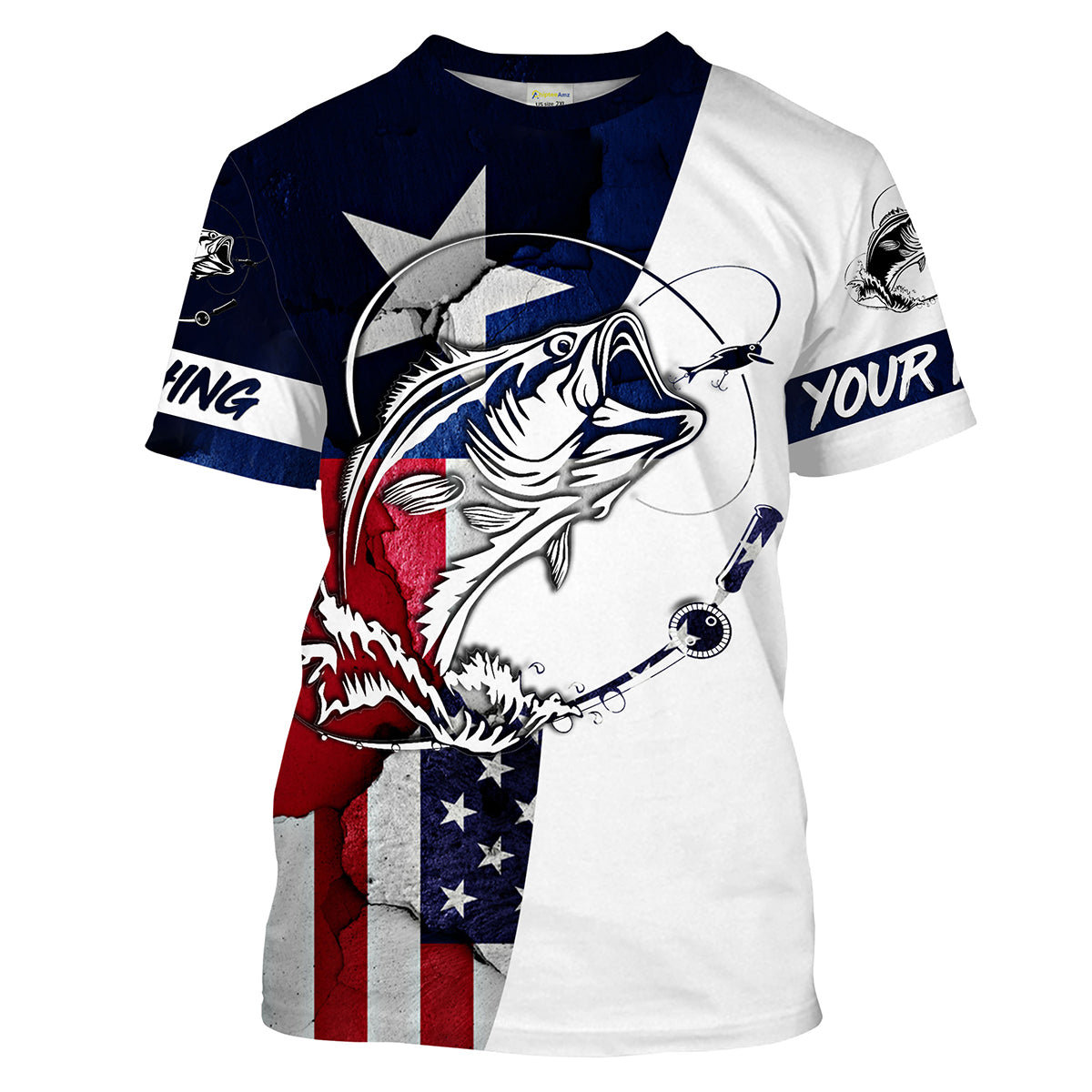 Bass Fishing TX and USA flag 3D Full printing Shirts - Personalized Fishing gift, Men's Performance Fishing Shirts FSD2201