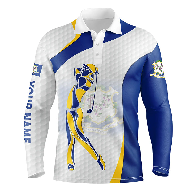 Connecticut Flag mens golf polo shirts custom patriotic golf shirts for men, unique mens golf apparel NQS7441