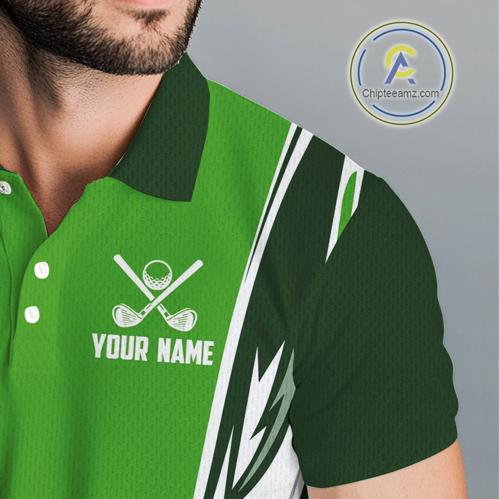Green and white Mens golf polo shirts custom golf attire for men, gifts for golf lovers NQS10084