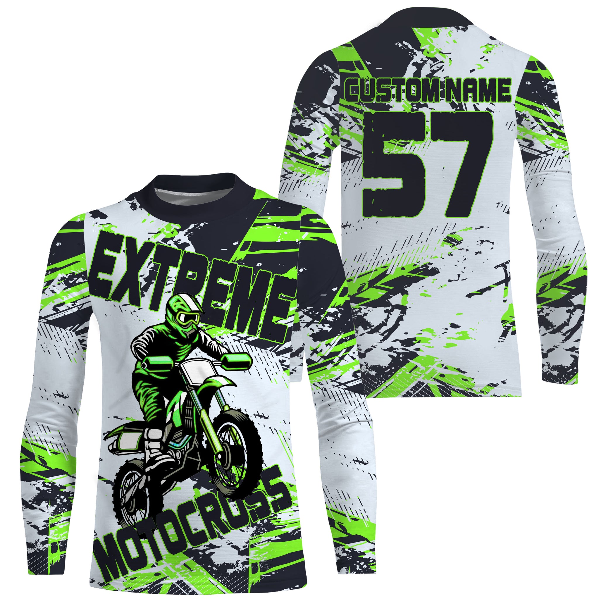 Customized name&number Motocross jersey green white youth adult UV MX dirt bike long sleeves racing PDT190