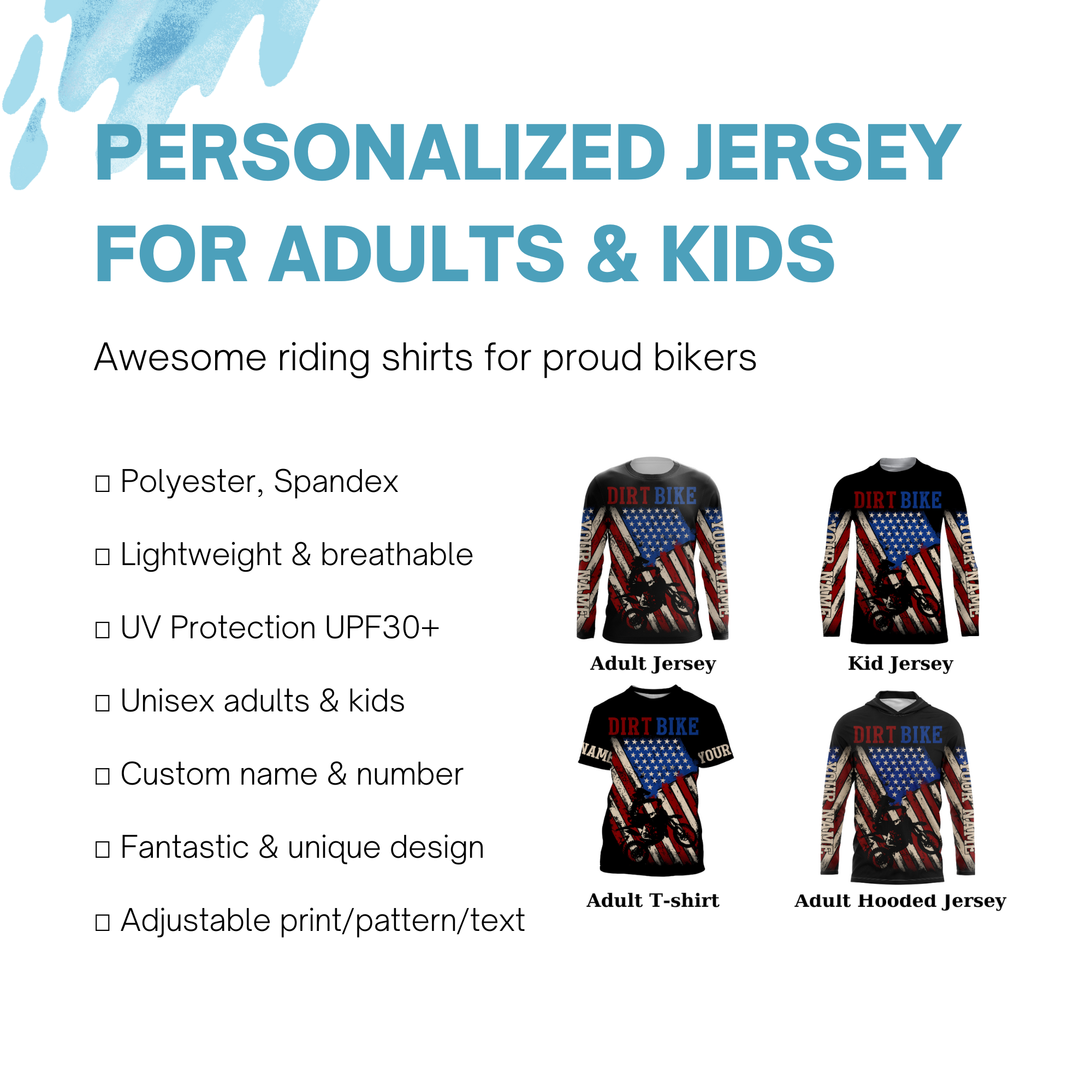 • PERSONALIZED RIDER SHIRT: This super cool shirt is exactly what all bikers are looking for. Add your name/number to make it a unique one that brings your own signature.