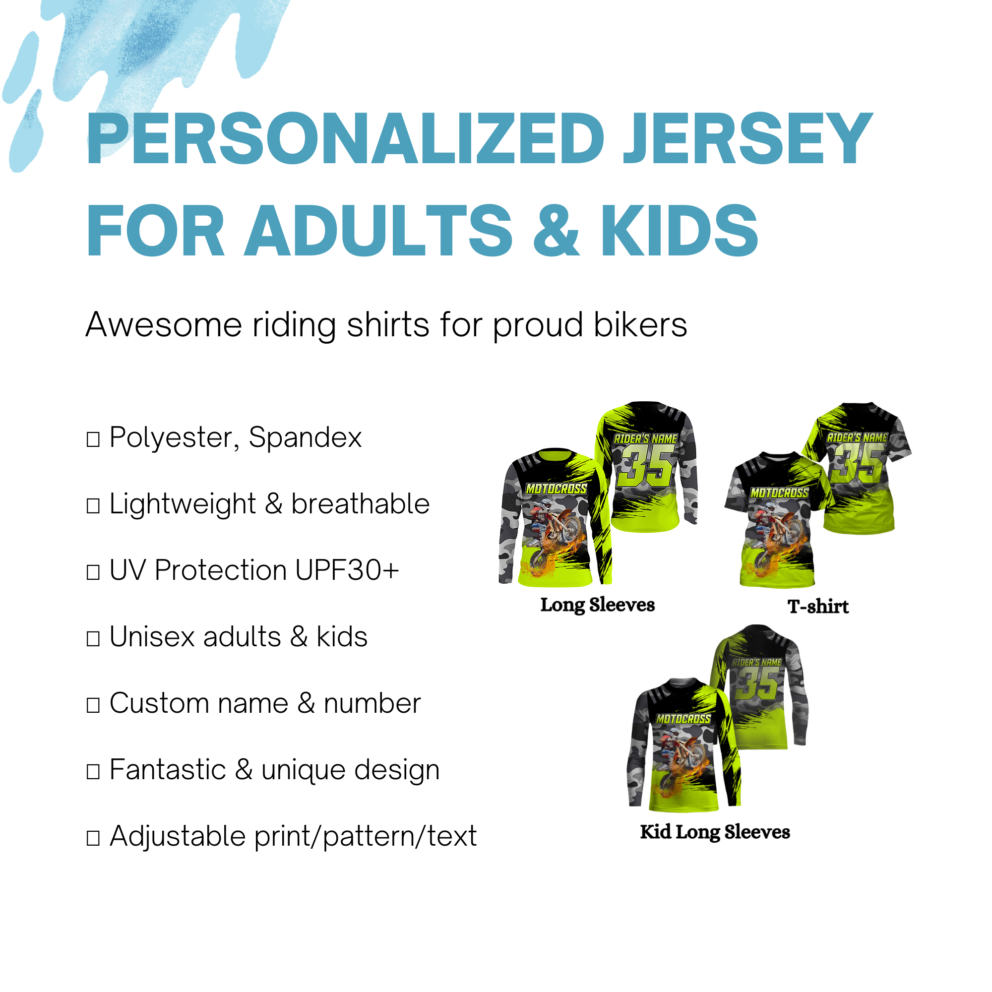 Personalized Dirt Bike Jersey UPF30+ Anti UV, Camo Motocross Racing Motorcycle Off-road Youth Riders| NMS452