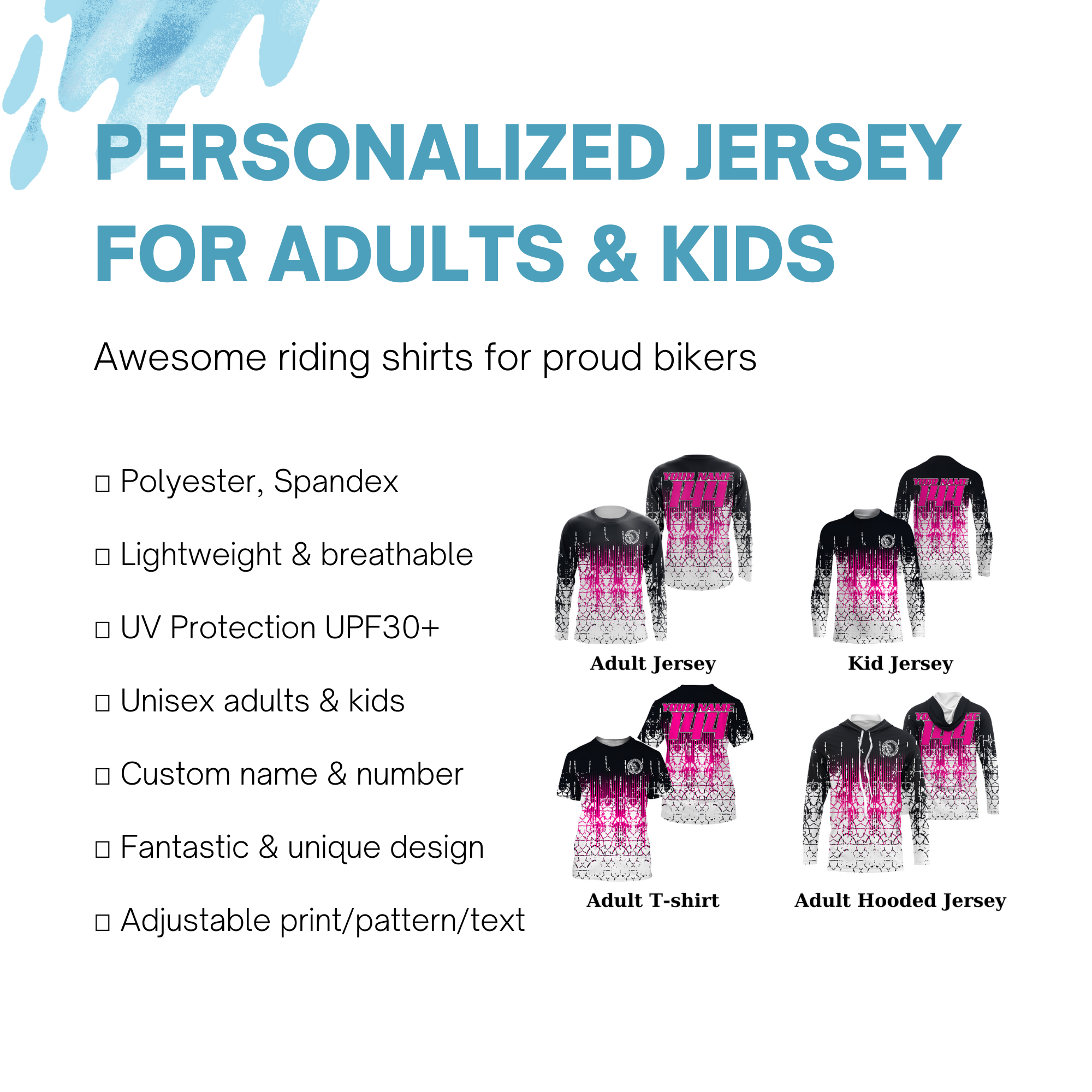 - PERSONALIZED RIDER SHIRT: This super cool shirt is exactly what all bikers are looking for. Add your name/number to make it a unique one that brings your own signature.
