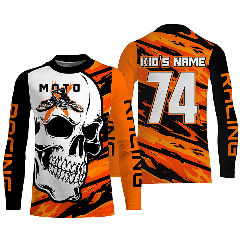 Skull MotoX Jersey Custom Motocross UPF30+ Orange Dirt Bike Racing Motorcycle Bikers Racewear NMS1263