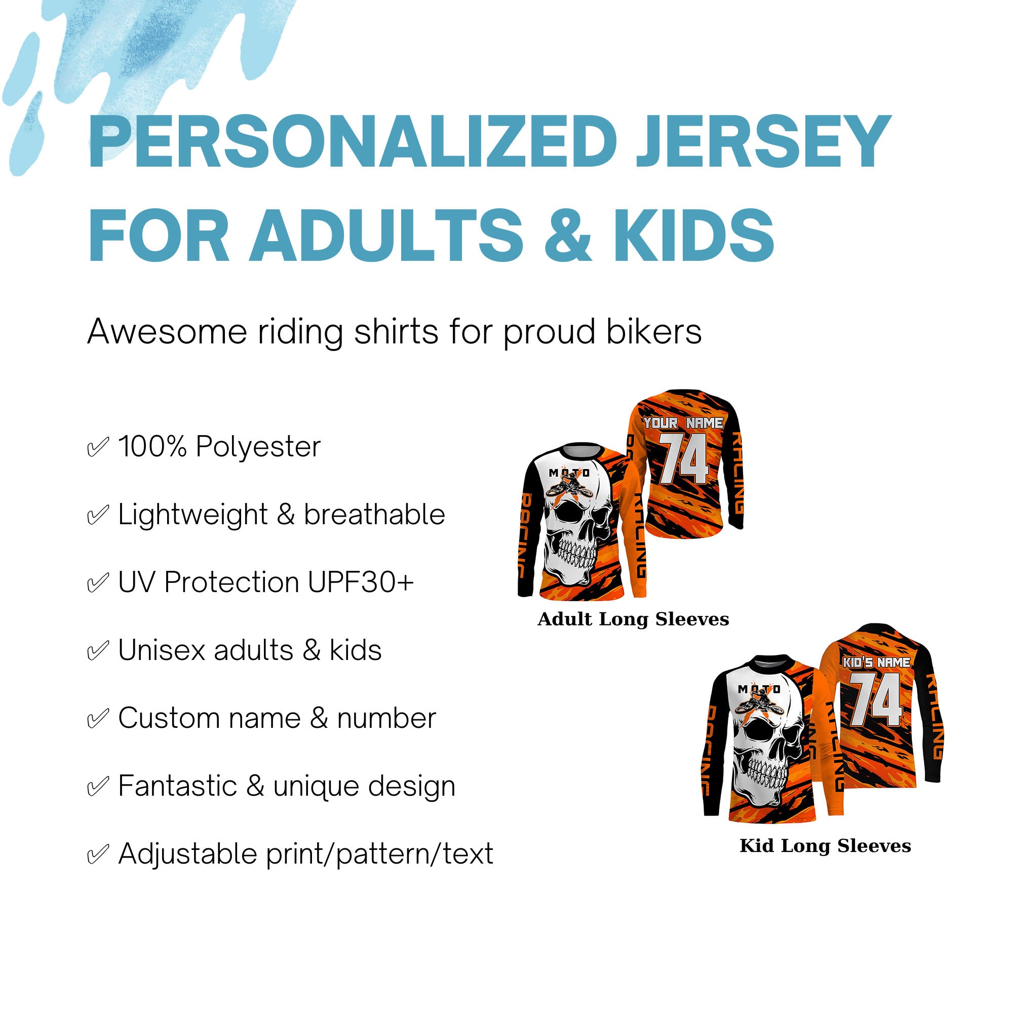 - PERSONALIZED RIDING JERSEY: This super cool shirt is exactly what all bikers are looking for. Add your name/number to make it a unique one that bears your own imprints.