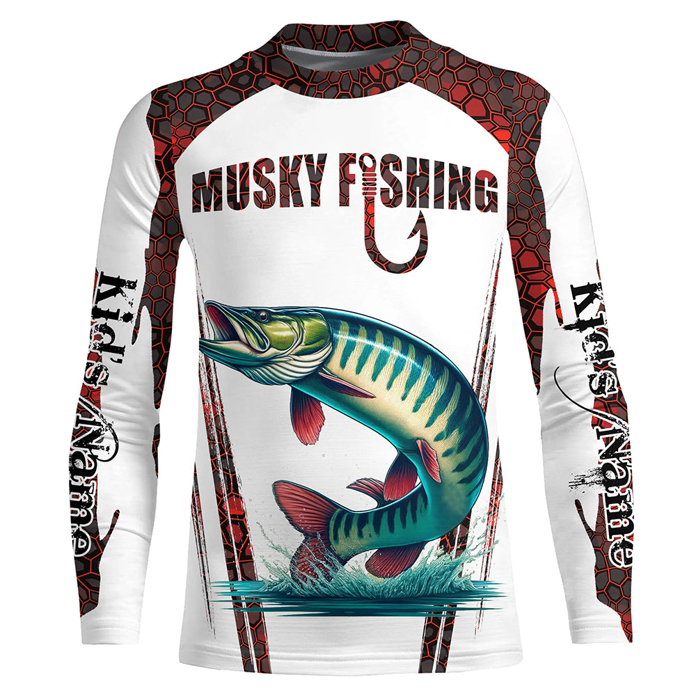 Musky fishing red camo Custom Name 3D Fishing Shirts UV Protection Gift For Fisherman NQS5167