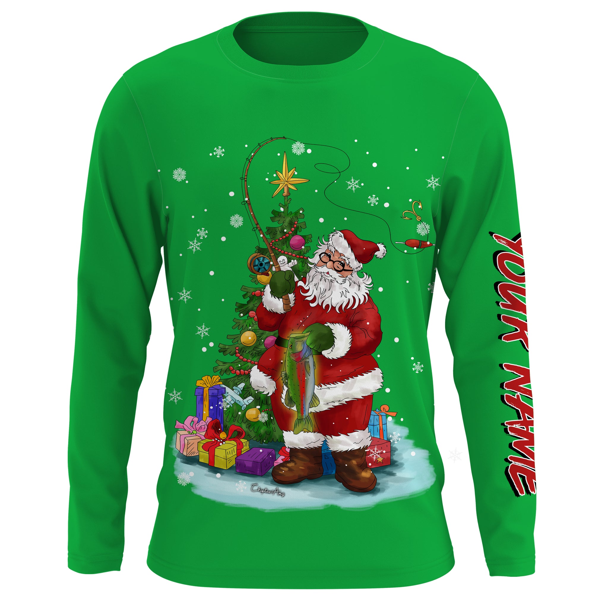 Bass fishing Santa Claus with bass fish ChipteeAmz's art UV protection long sleeves personalized gift AT070