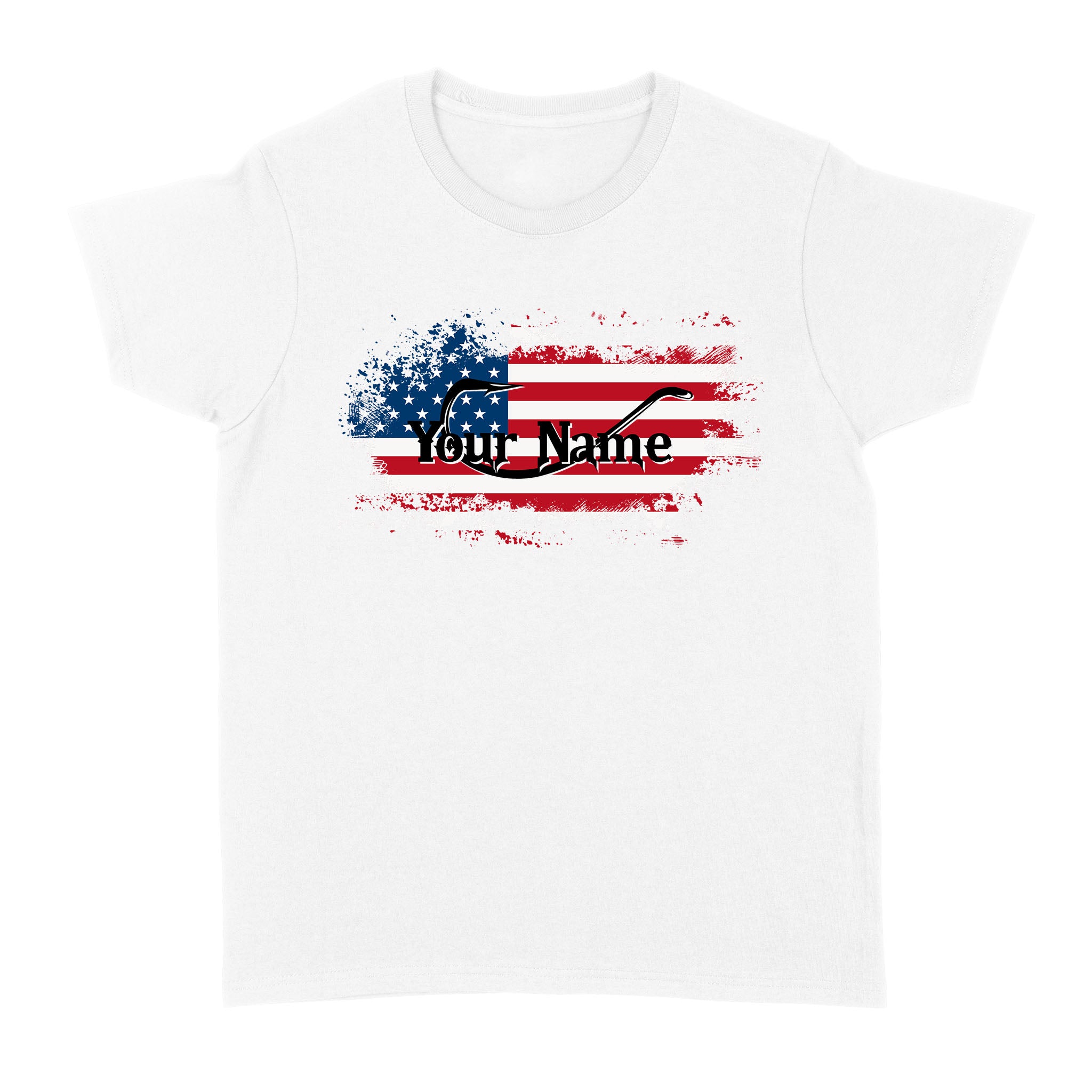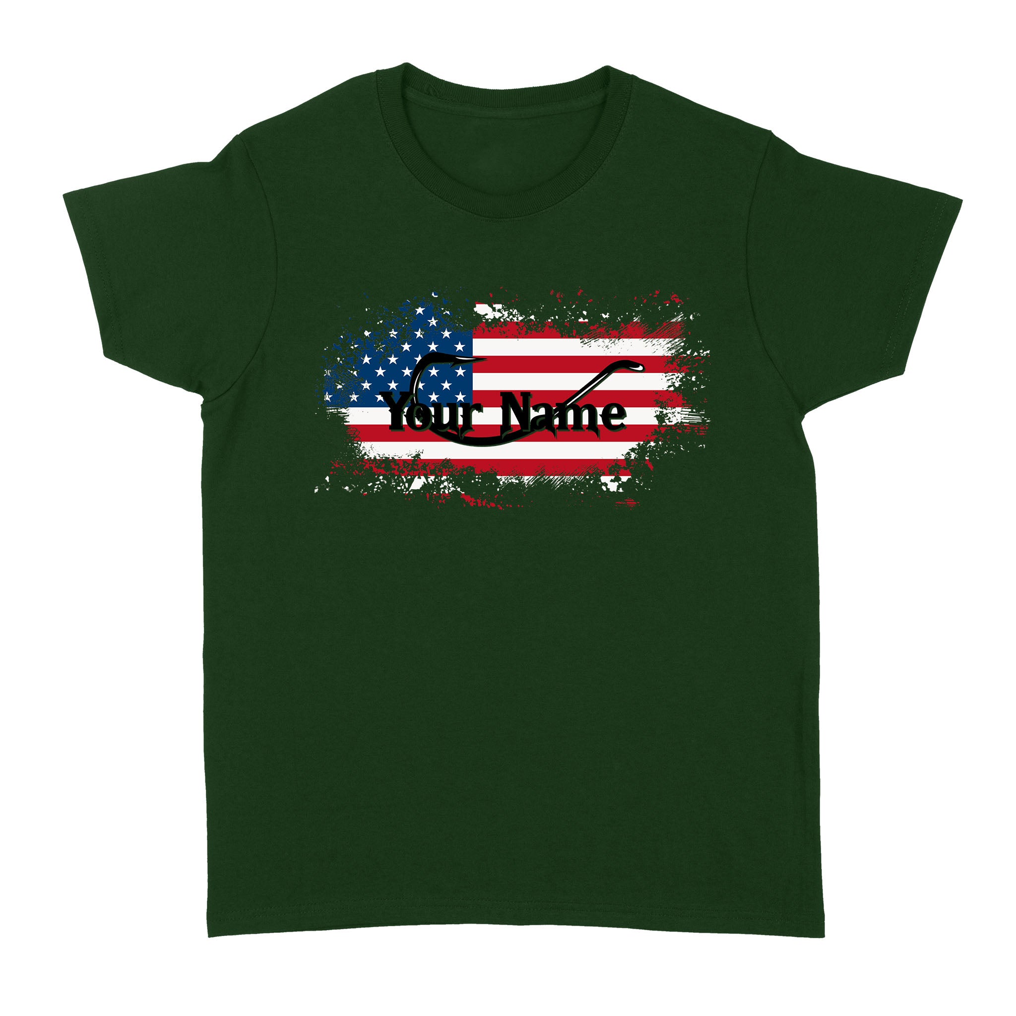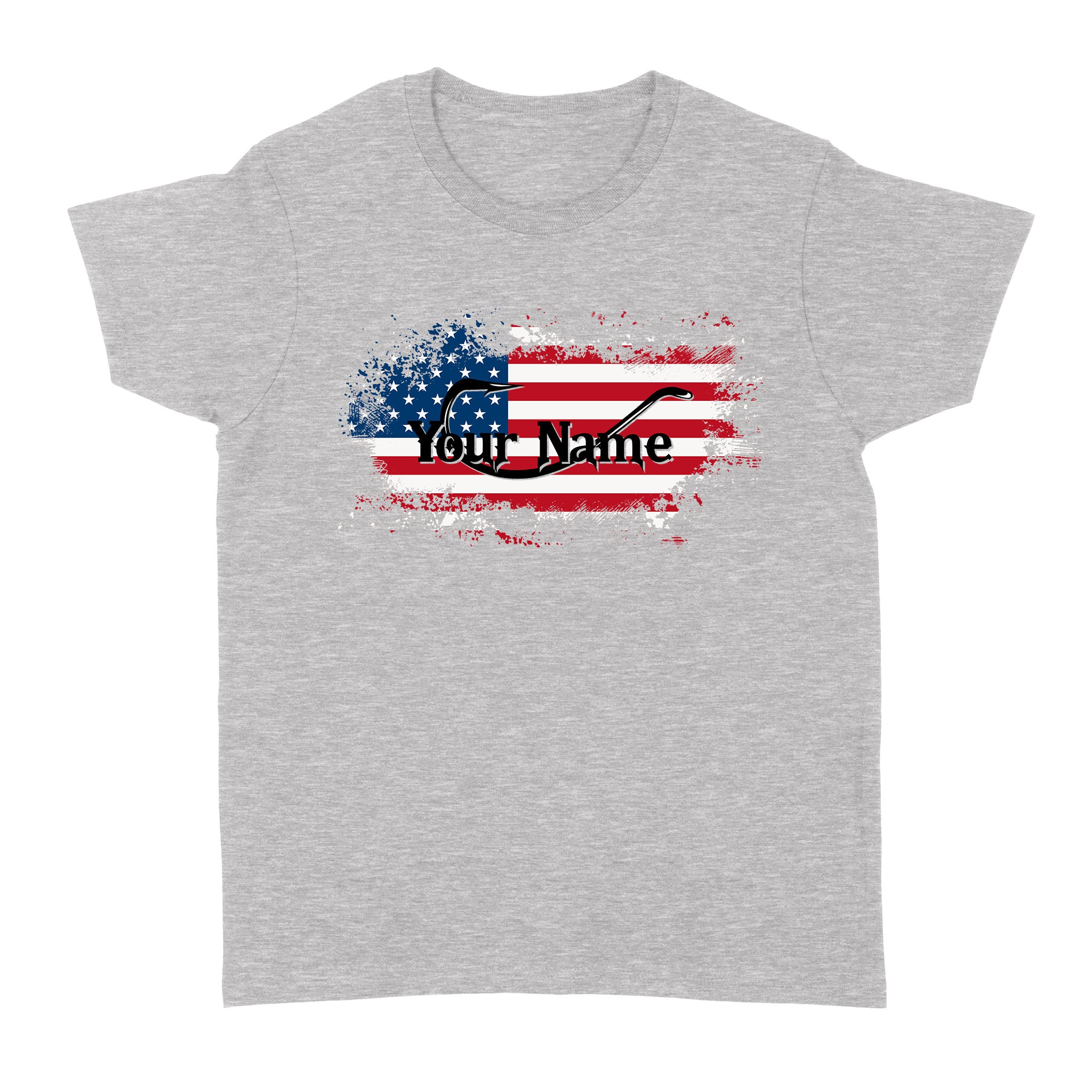 Custom name American Flag Fish Hook fishing Women's T-shirt, personalized fishing apparel gift for Fishing lovers- NQS1198