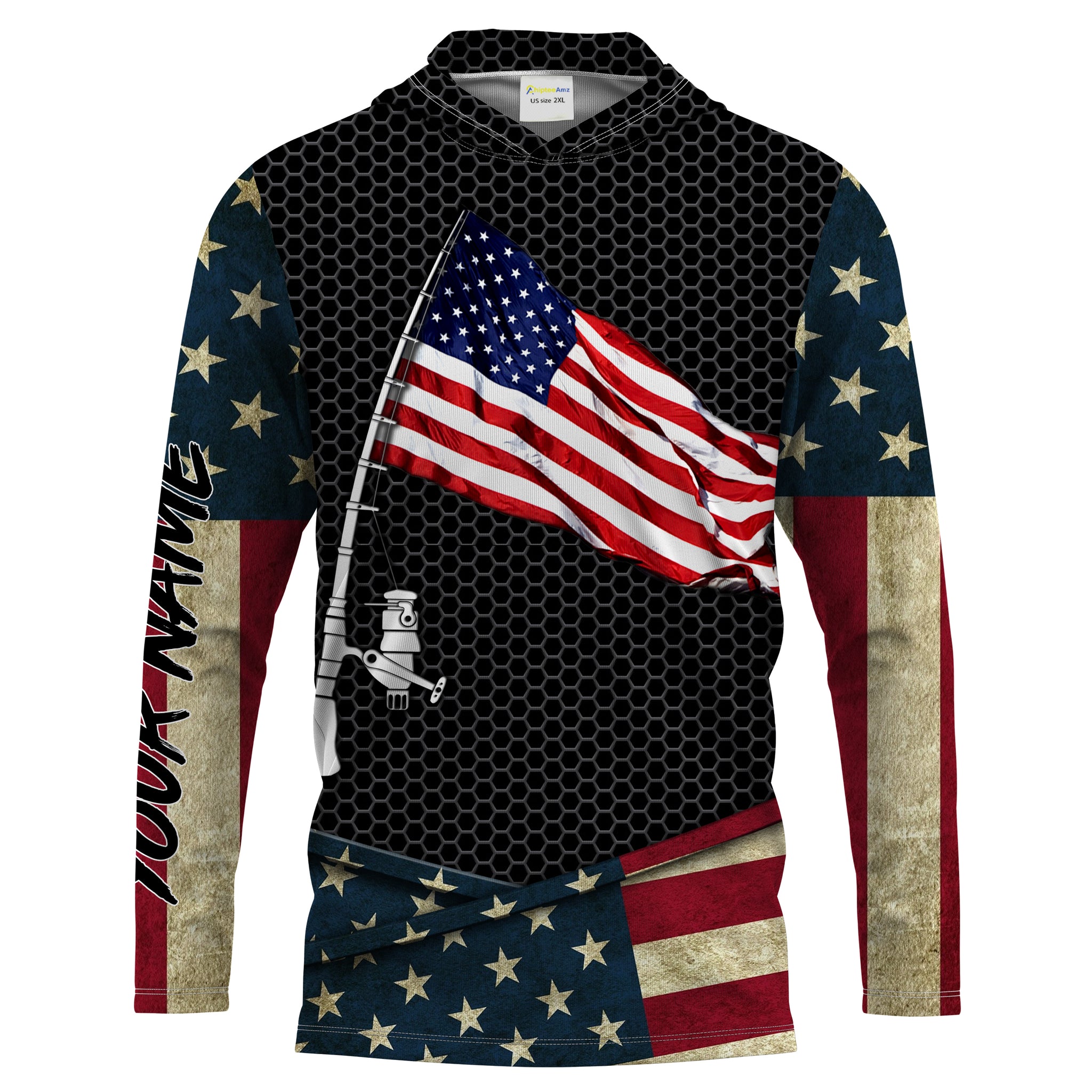 Fishing shirt American flag fishing rod Custom Name Sun protection Shirt Personalized fishing gifts ideas FSD1798