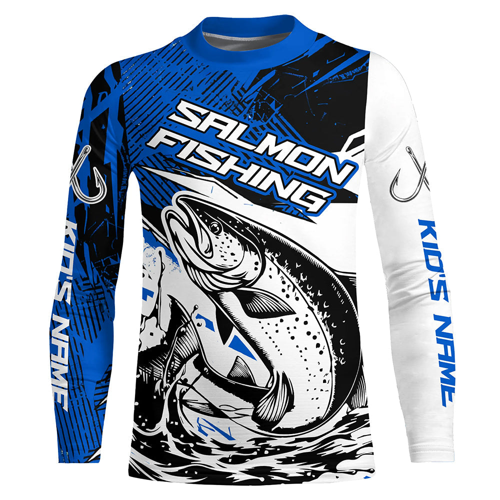 Personalized Chinook Salmon Fishing Jerseys, Salmon Performance Long Sleeve Fishing Shirts | Blue IPHW6208