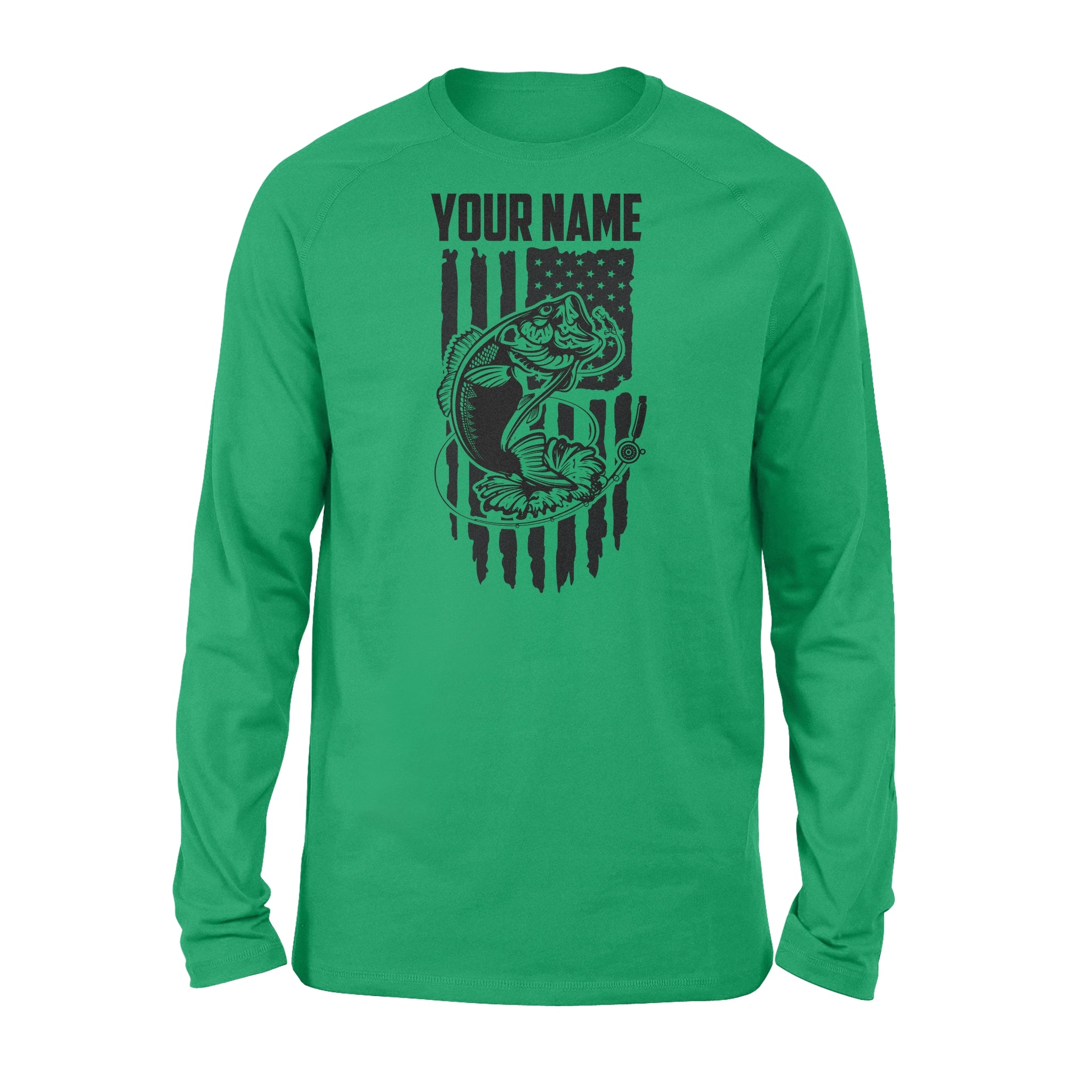 Largemouth bass fishing US American flag personalized patriot shirt D01 NQS1310 - Standard Long Sleeve