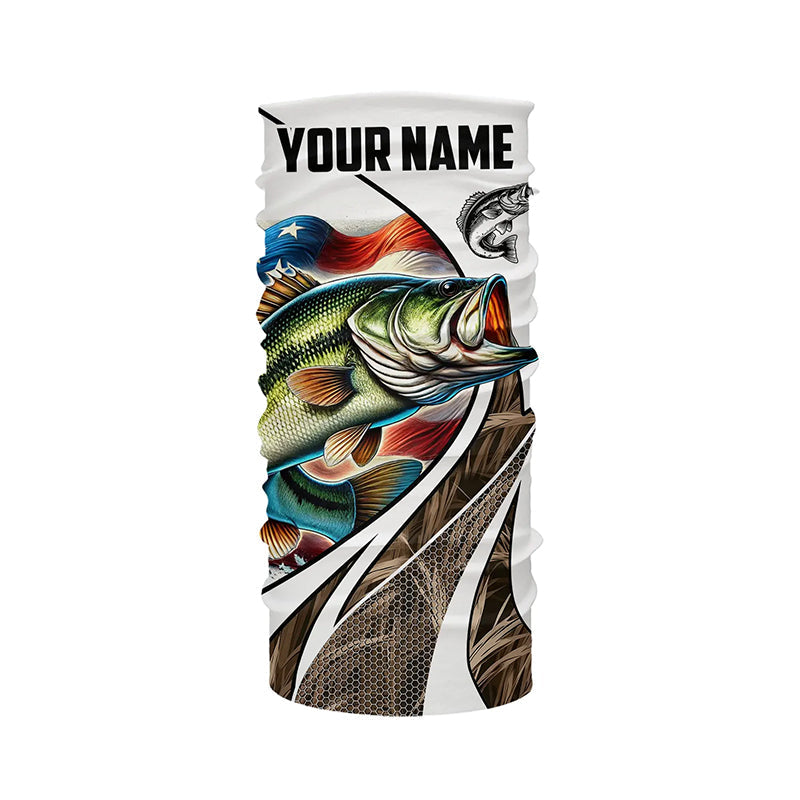 Personalized Largemouth Bass American flag Camo Fishing Jerseys, Custom Patriotic Bass Fishing Shirts NQS7870