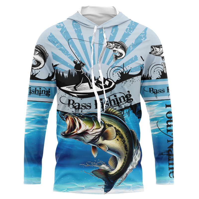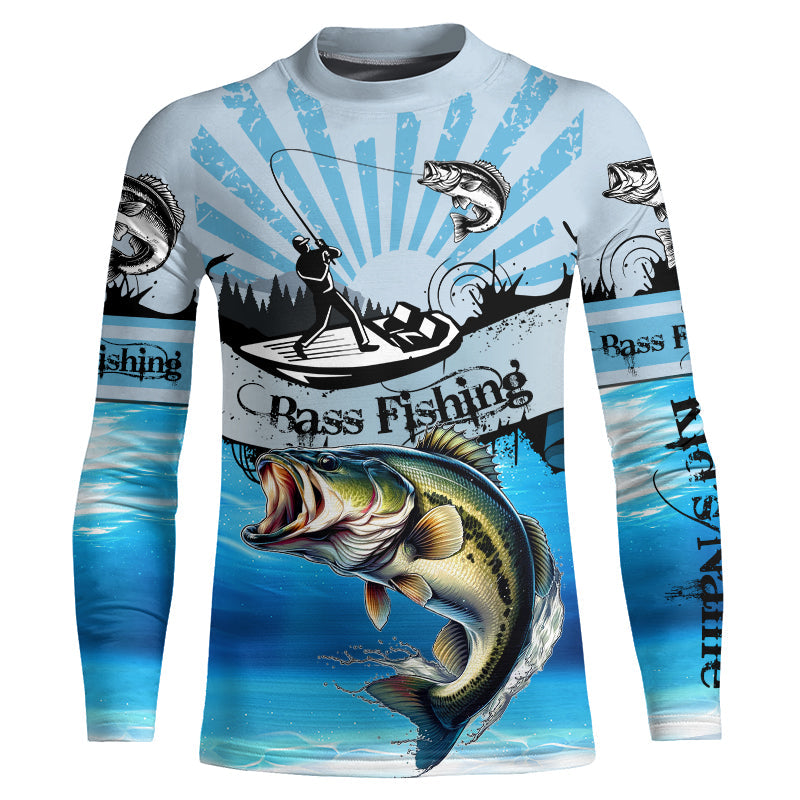 Personalized Largemouth Bass Fishing Jerseys blue Long Sleeve Fishing Shirts, Bass fishing jerseys NQS8956