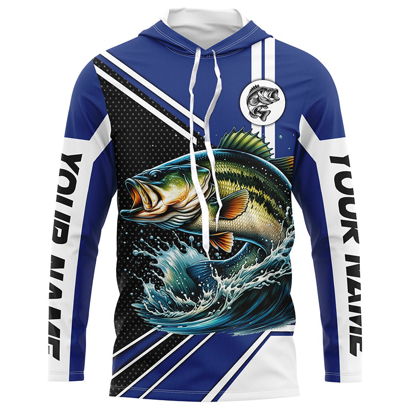 Personalized Largemouth Bass fishing Long Sleeve Performance Fishing Shirt, Bass fishing jersey | Blue NQS7598