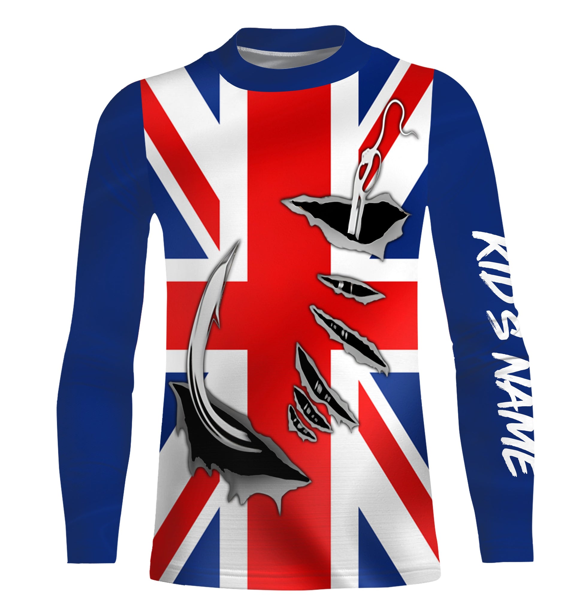 UK Fishing 3D Fish Hook England Flag Sun / UV protection quick dry customize name long sleeves shirts personalized Patriotic fishing apparel gift for Fishing lovers IPH1976