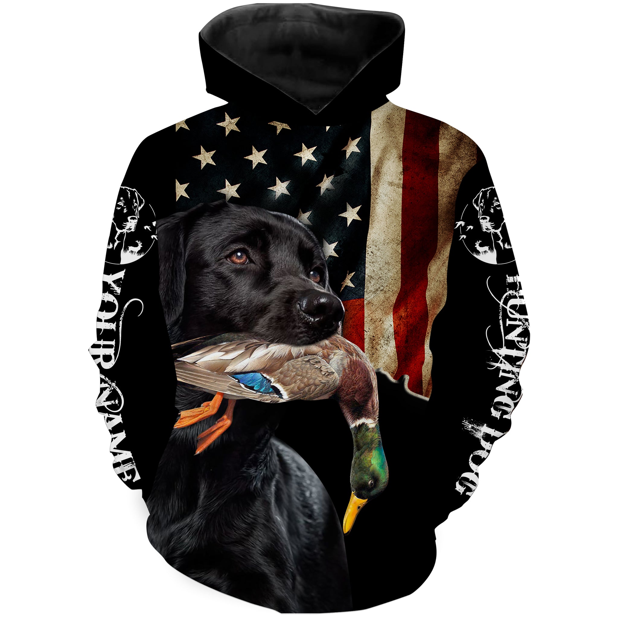 Hunting Dog Shirt| All Over Printed T-shirt Long Sleeve Hoodie| Custom American Flag Black Lab Shirt| JTSD223