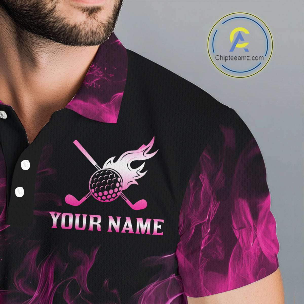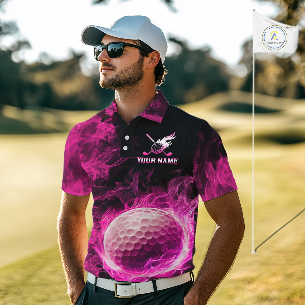 Black and Pink Flame Golf Ball Mens Golf polo shirts custom name golf outfit for men golf clothes NQS9869