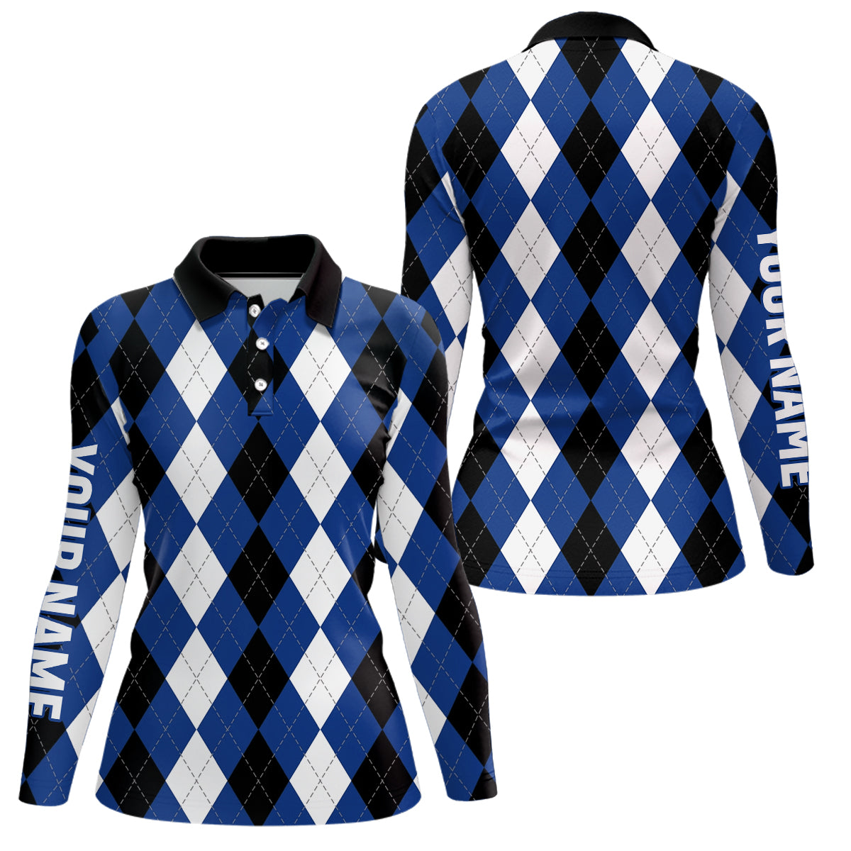 Womens golf polo shirts custom blue argyle plaid pattern golf attire for women, golf gifts NQS6899