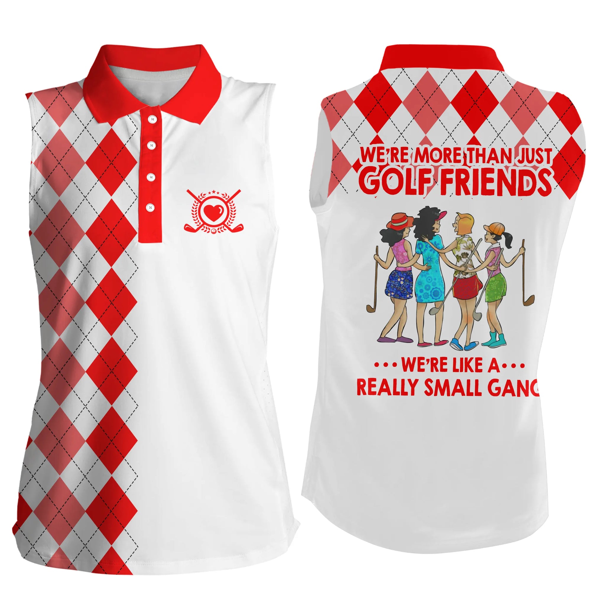 Womens sleeveless polo shirts multi-color argyle plaid we're more than golf friends we're small gang NQS4904
