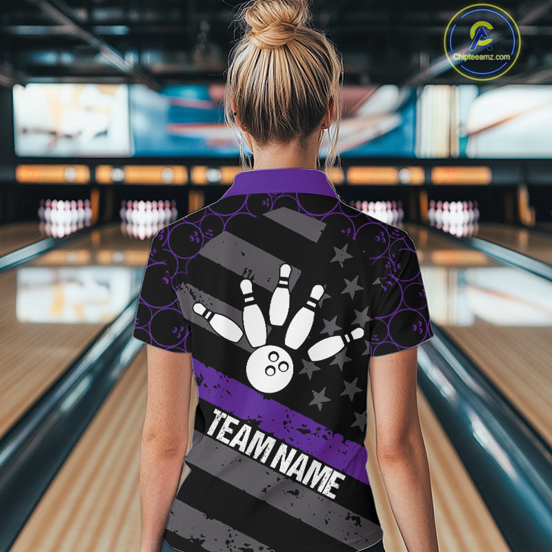 Black American flag Women bowling shirts Custom bowling camo Team Jerseys, gift for Bowlers | Purple NQS10897