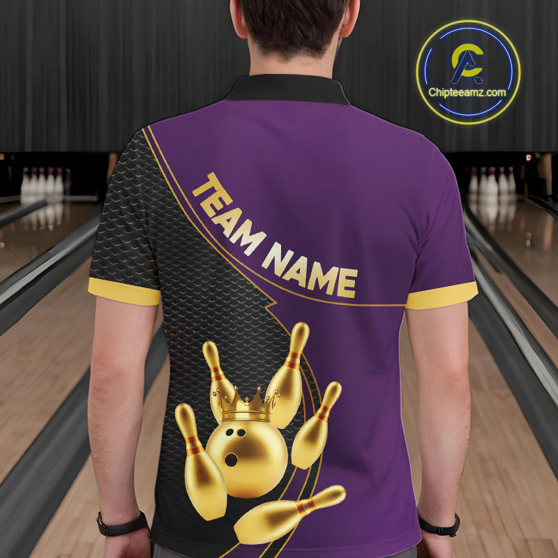 Purple and Gold Bowling shirts for men Custom Team Bowling Polo, 1/4 zip Shirt bowlers Outfit NQS10987