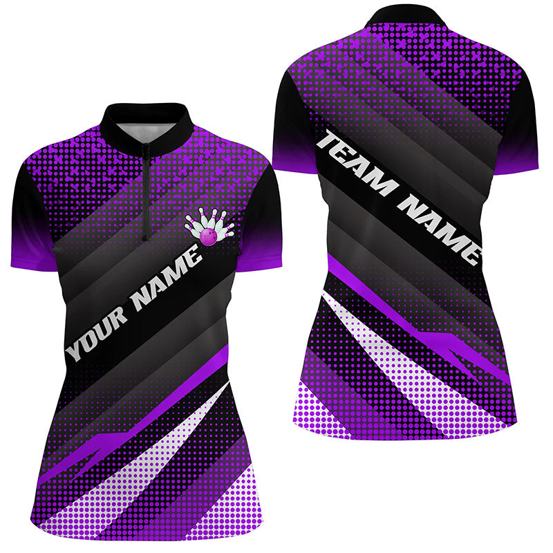 Purple Bowling Custom Women Bowling Polo, Quarter zip Shirts Bowling Team Jerseys Bowling Tournament NQS8409