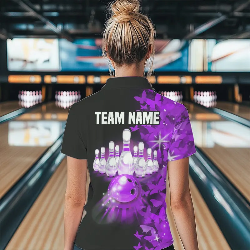 Purple Butterfly Bowling Shirts For Men Women Custom 1/4 Zip Bowling Jersey Team BDT505