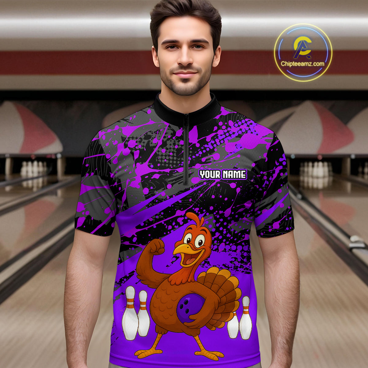 Purple Funny Turkey Bowling Team Shirt for Men Bowling Jersey Thanksgiving Bowling Outfit QZT776
