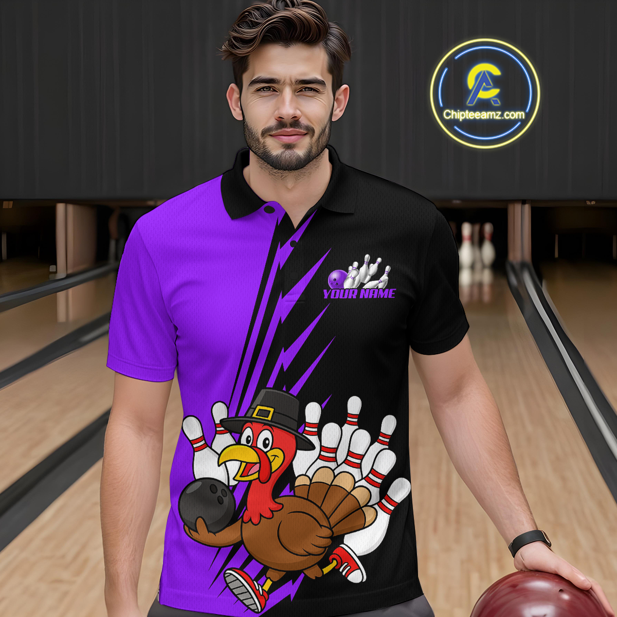 Purple Turkey Bowling Shirts for Women Men Team Custom Bowling Jerseys Thanksgiving MBL180