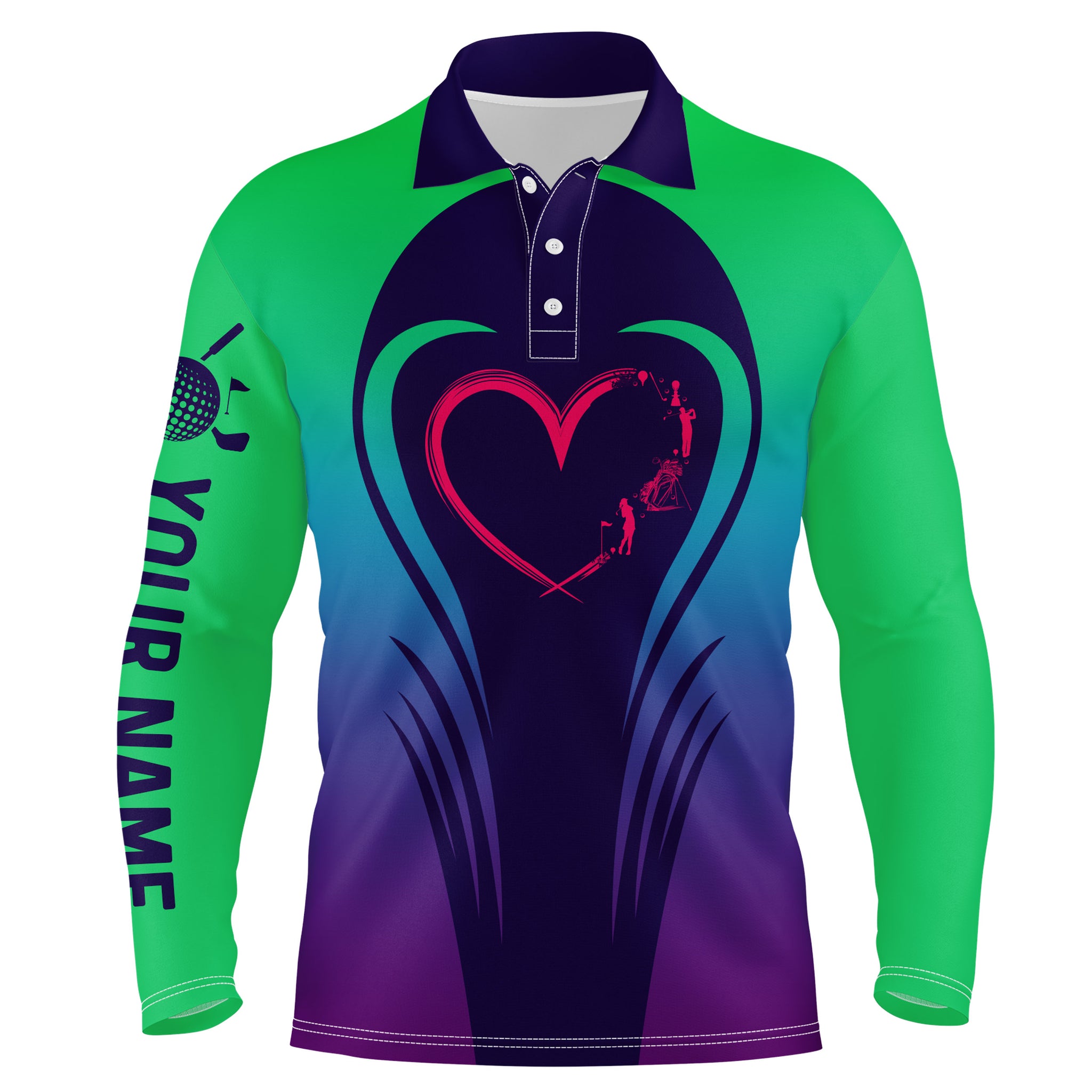 Love Golf Gradient Green Purple Mens Polo Shirts Custom Golf Shirts For Men Best Golf Gifts LDT0402