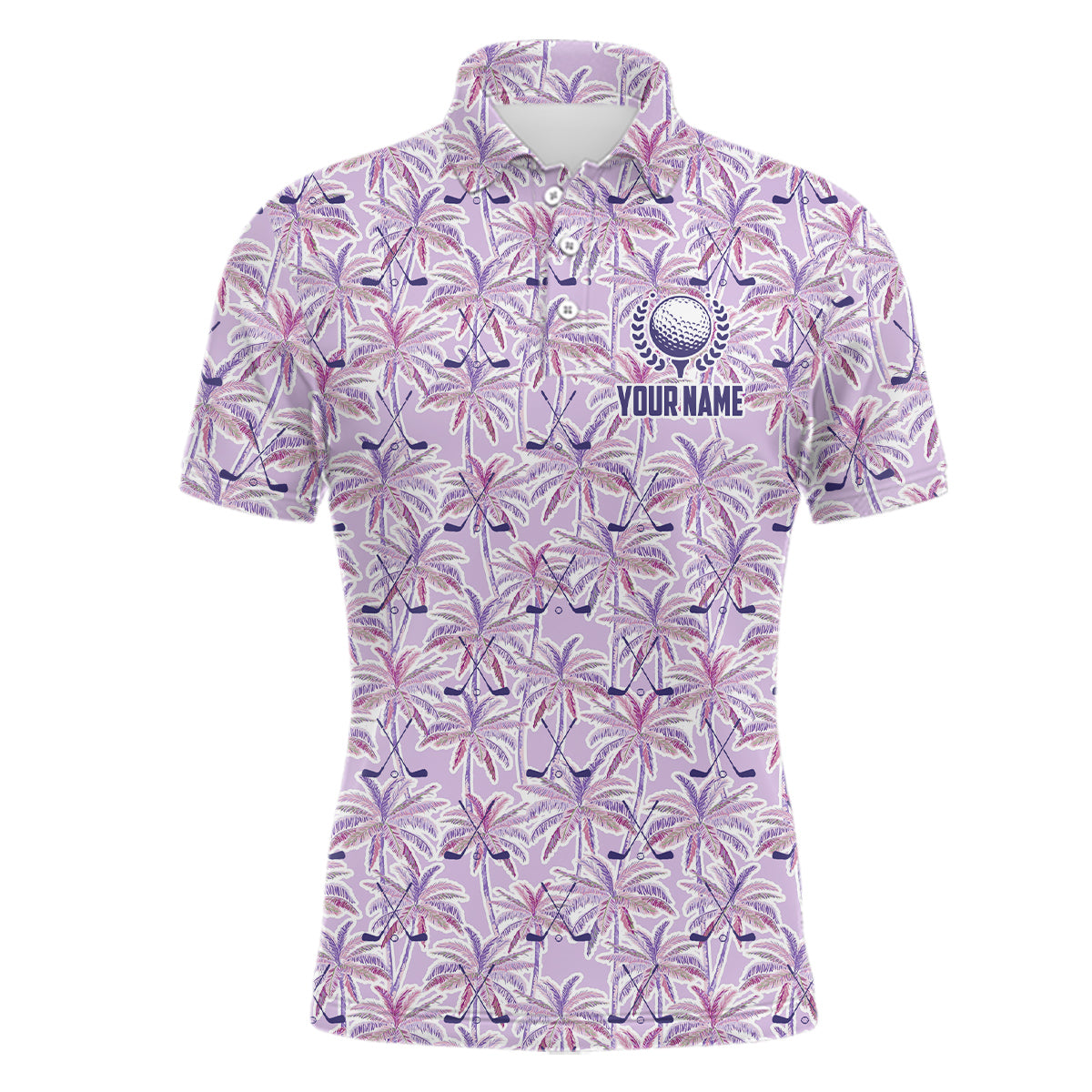 Purple palm tree golf clubs pattern Mens golf polos shirts custom golf shirts for men, golfing gifts NQS6879