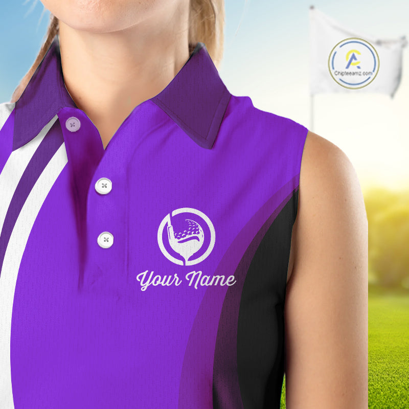 Women sleeveless polo shirt custom name purple and white golf shirt, team golf shirts ladies NQS9845