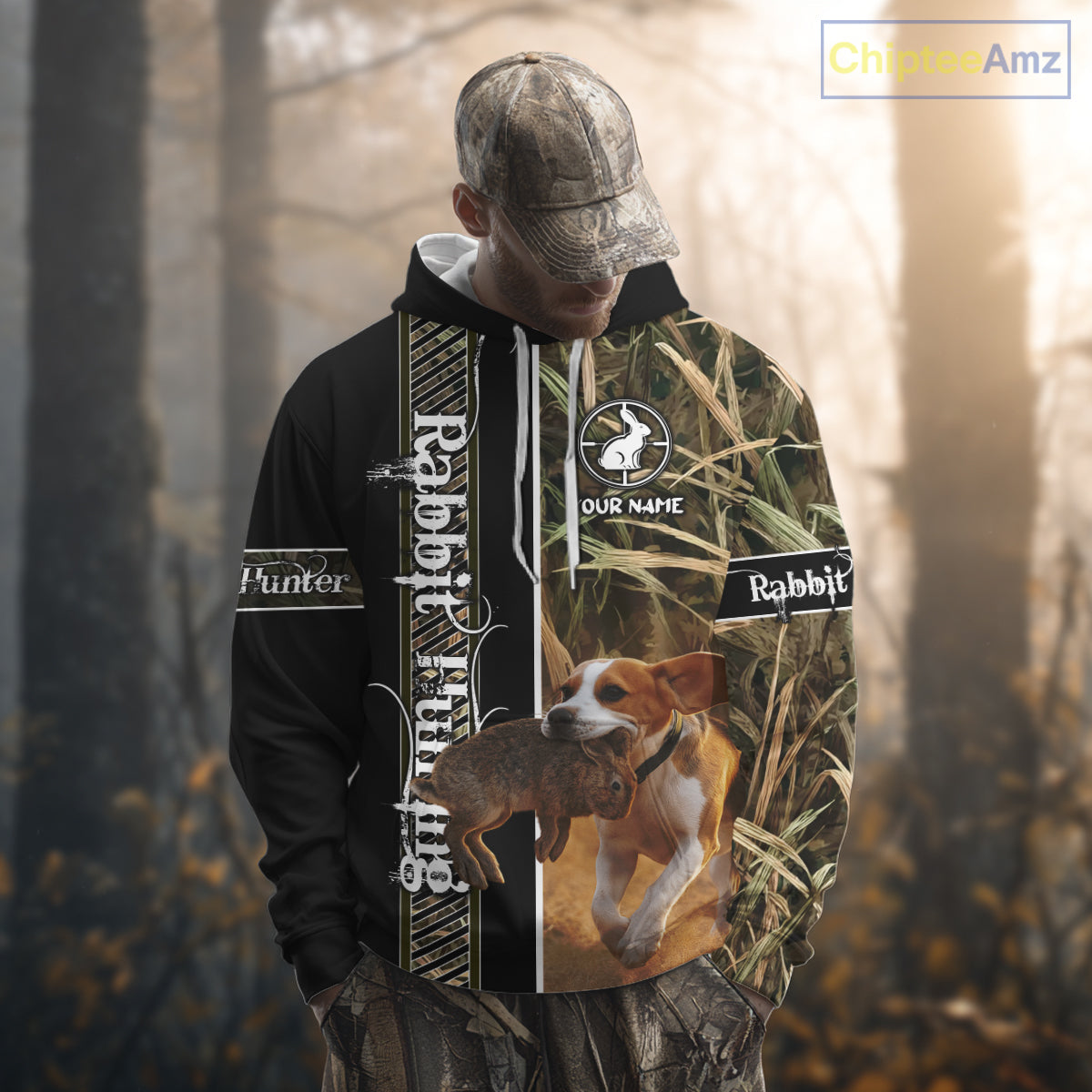 Custom Rabbit Hunting With Beagle Dog Camo 3D All Over Printed Shirt, Hunting Gift NHT161