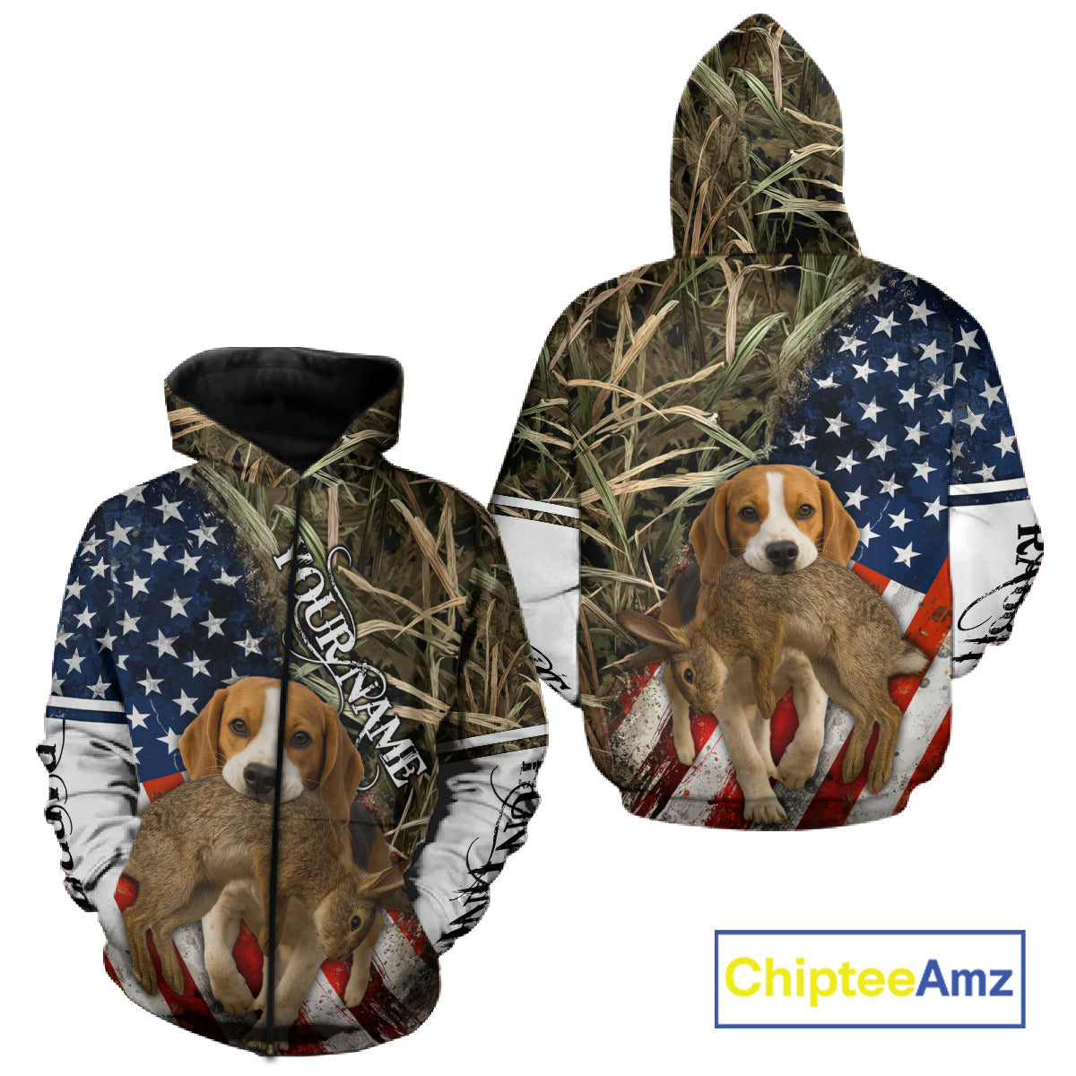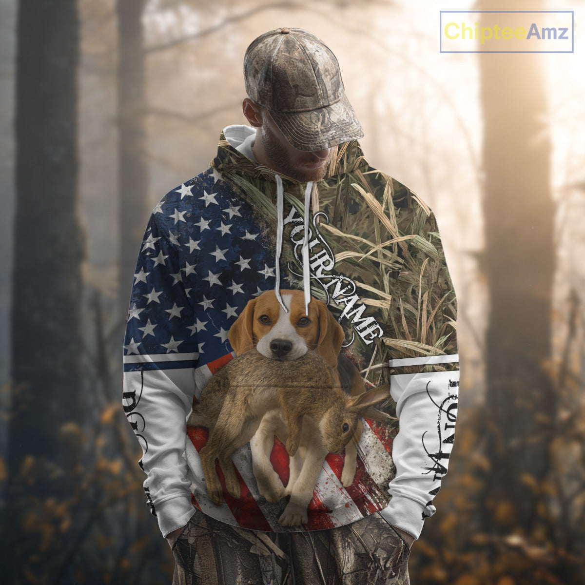 Rabbit Hunting With Beagle 3D US Flag Camo Custom Hunting Shirt, Rabbit Hunting Clothing NHT141