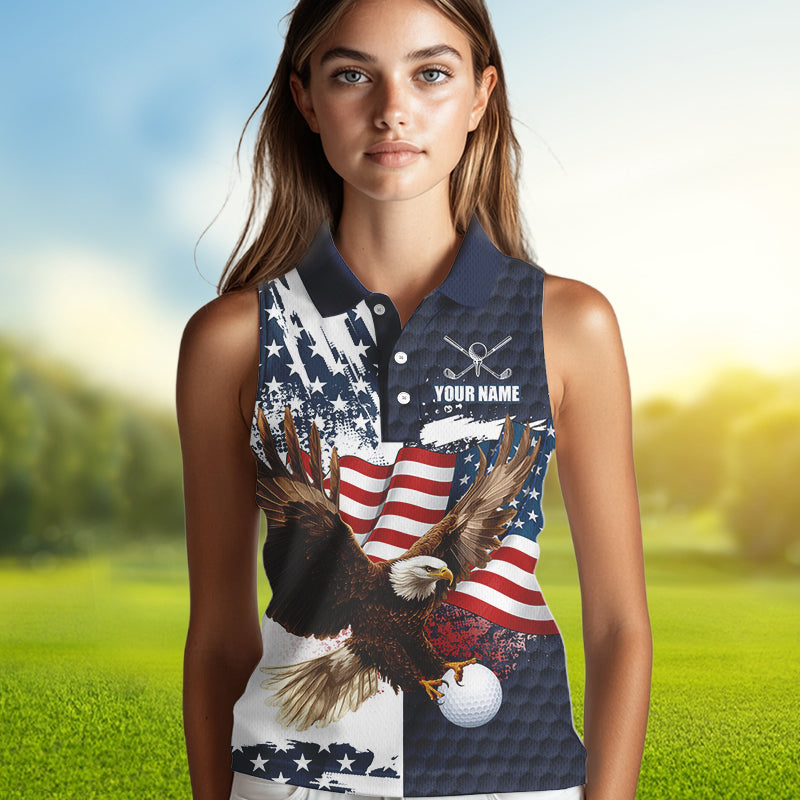 Red, White and Blue American Flag Eagle Sleeveless Golf polo shirts Custom Patriotic Golf Team Jersey NQS9608