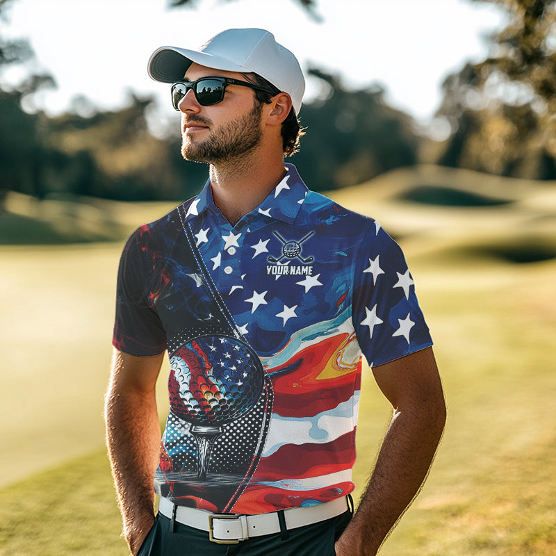 Red, White and Blue American Flag Golf Polo Shirts For Men Custom Patriotic Team Golf Shirt For Golfer NQS9695