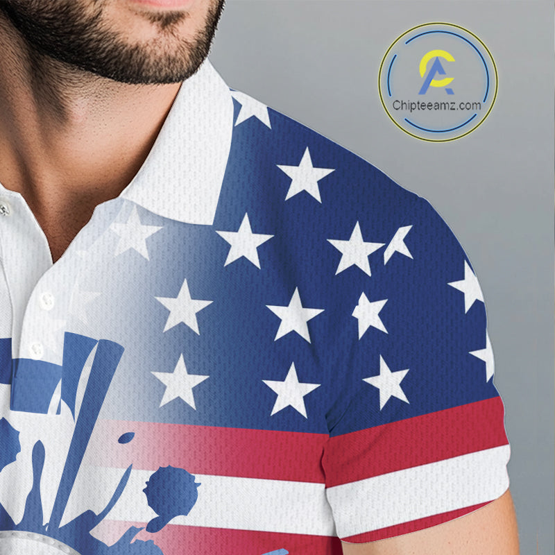 Red, White and Blue American Flag Mens Golf polo shirts Custom patriotic Golf Outfit For Mens NQS10035