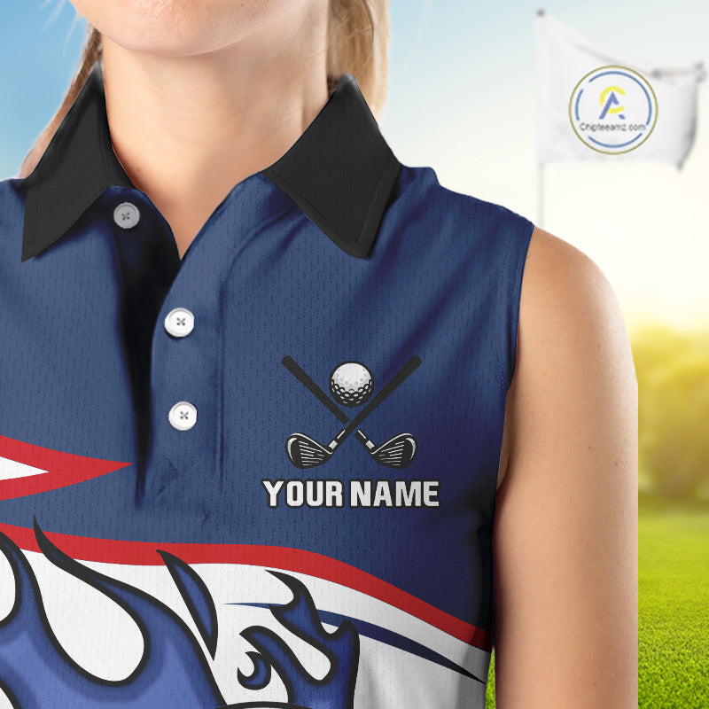 Red, White and Blue Flame golf ball Women Sleeveless Golf polo shirts Custom patriotic Golf Outfit NQS10044