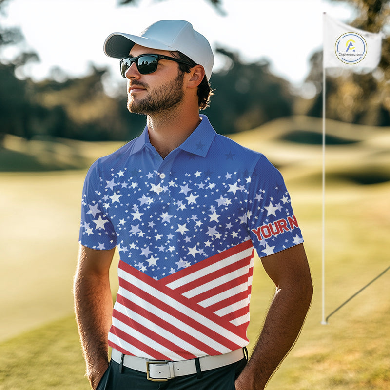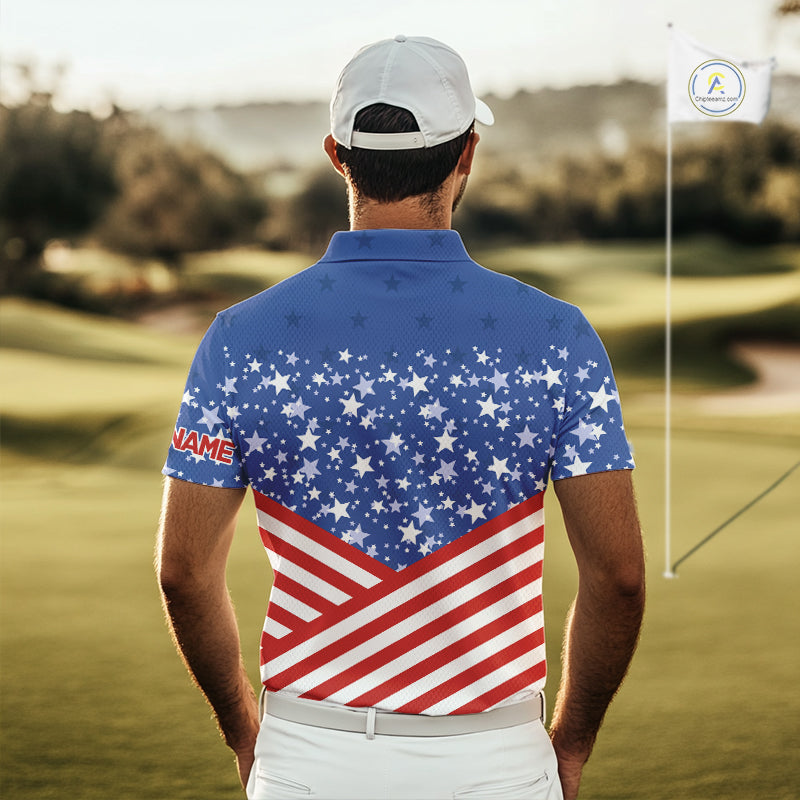 Red, White and Blue Men golf polo shirts Custom American Flag patriotic Golf attire for men NQS10137