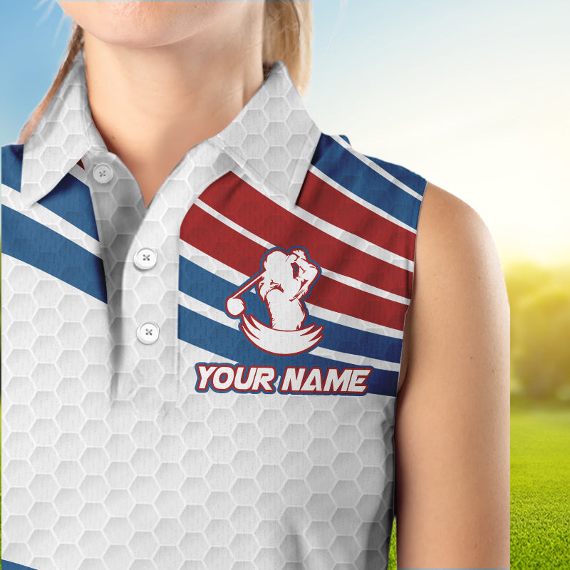 Red, White and Blue Pattern Women sleeveless polo shirts custom Patriotic golf wear for ladies NQS9381