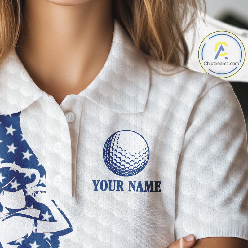 Red, White & Blue American Flag Golf polo shirts For Women Custom patriotic ladies golf top NQS9987