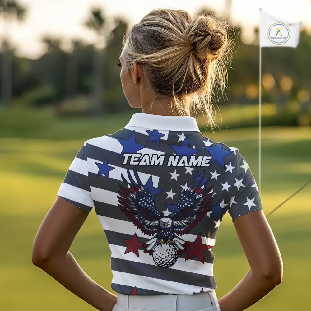 Gray and White American Flag Eagle Golf Polo shirt for Women Custom patriotic team ladies golf outfit NQS9798