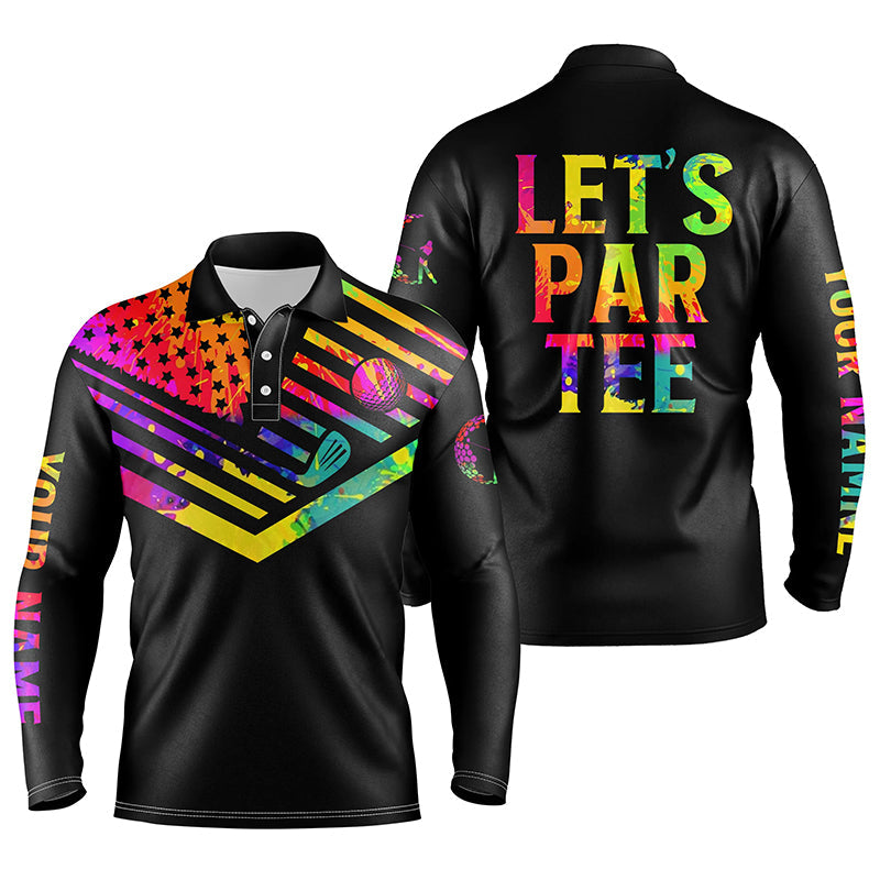 Mens golf polo shirts watercolor American flag patriot golf custom Let’s Par Tee black golf shirt NQS7433