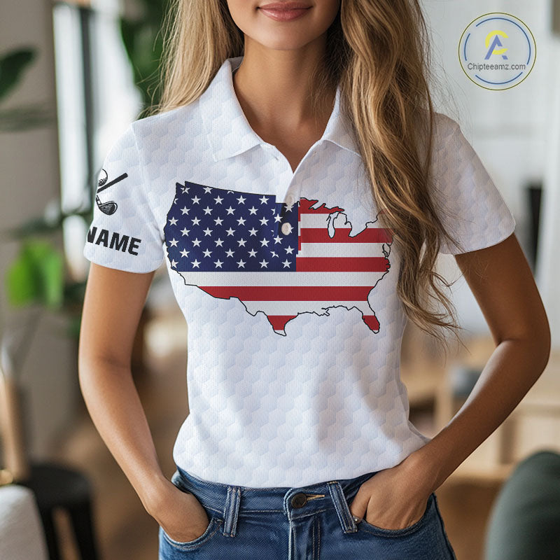 Personalized American Flag Women golf polo shirts Custom Patriotic Golf outfit For ladies NQS10183