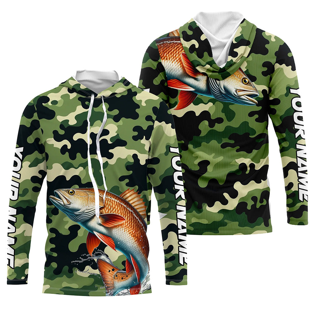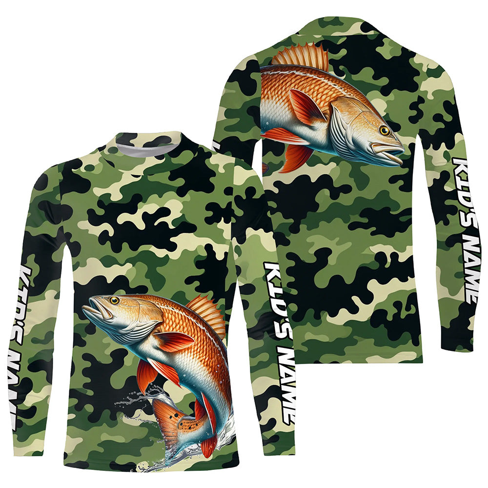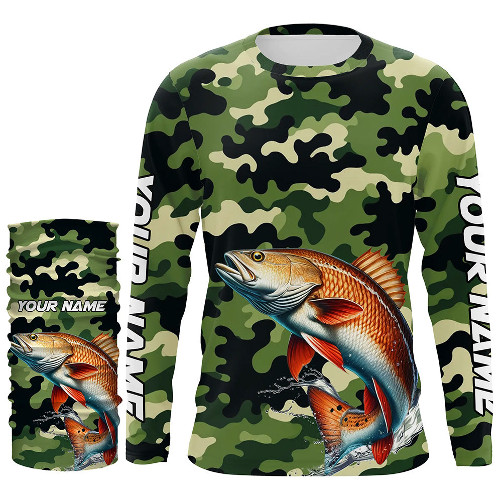 Black Green camo Redfish fishing Custom Long Sleeve Tournament Fishing Shirts, Red drum fishing Jersey NQS7554