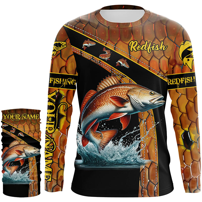 Redfish fishing scales UV protection Custom long sleeve fishing shirts, red drum fishing jerseys NQS5394