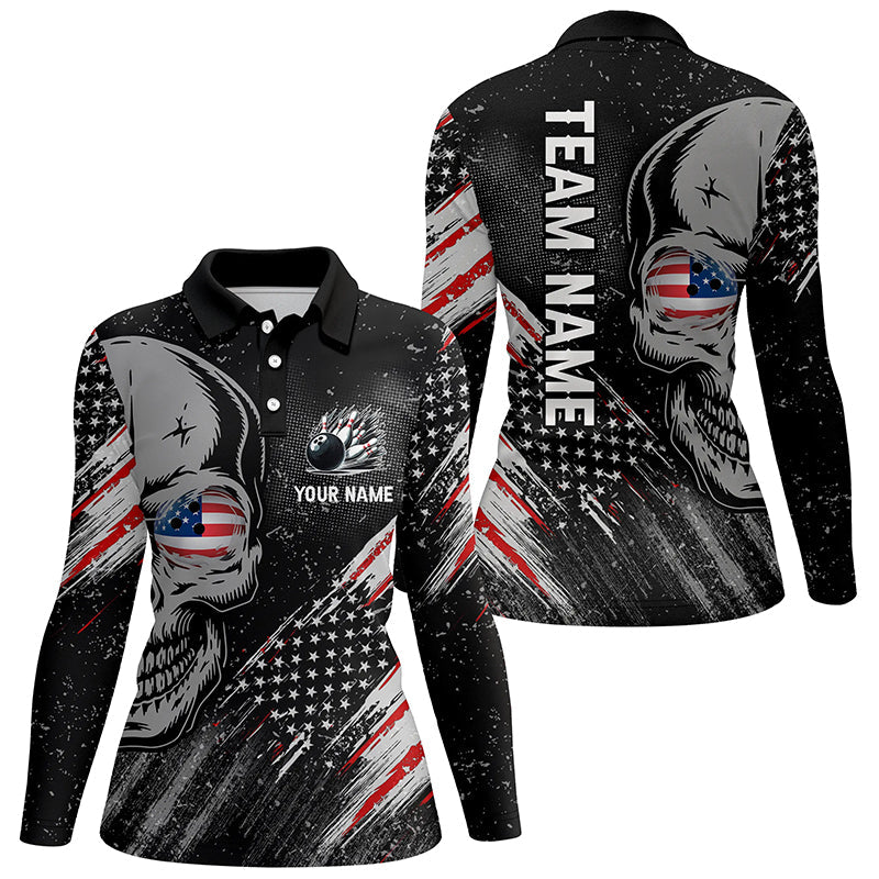 Black American flag retro bowling league jerseys custom skull Women Bowling Polo Shirts, bowler gifts NQS7158